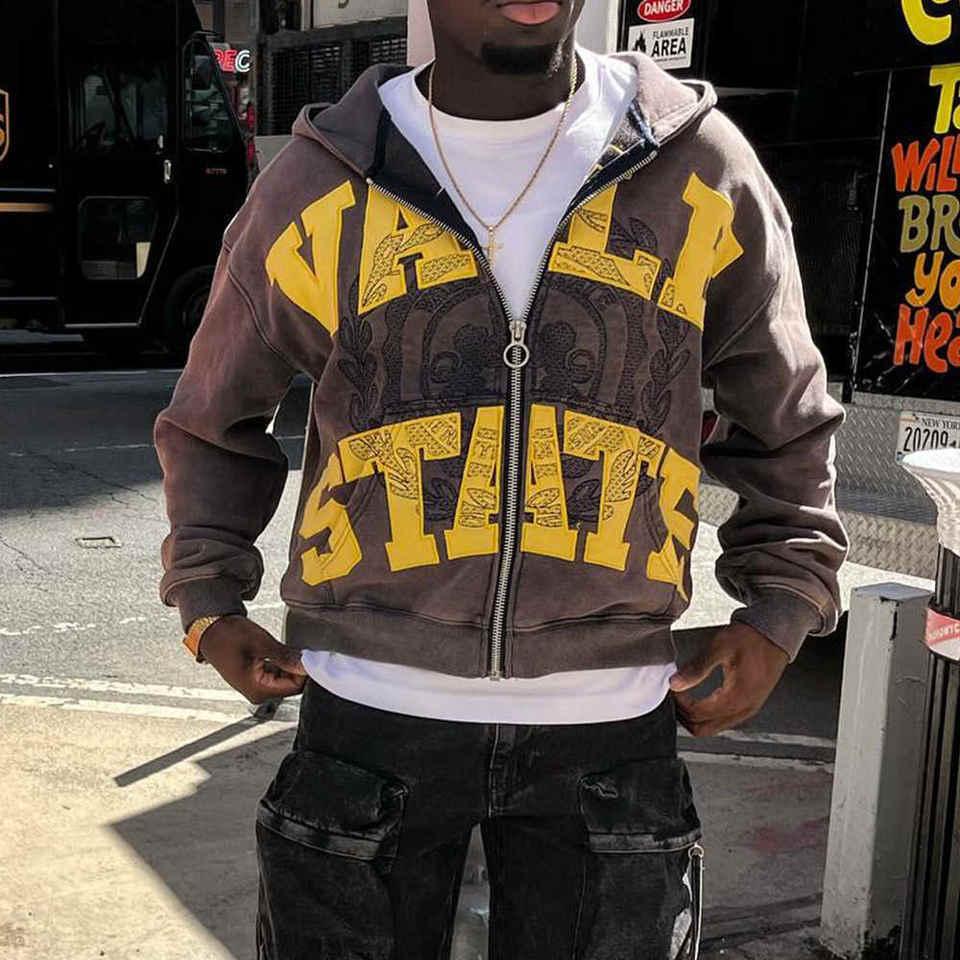 Sweat à capuche surdimensionné à fermeture éclair en molleton français 100% coton, lavage à l'acide, broderie personnalisée usée, appliqué, hiver, 500GSM
