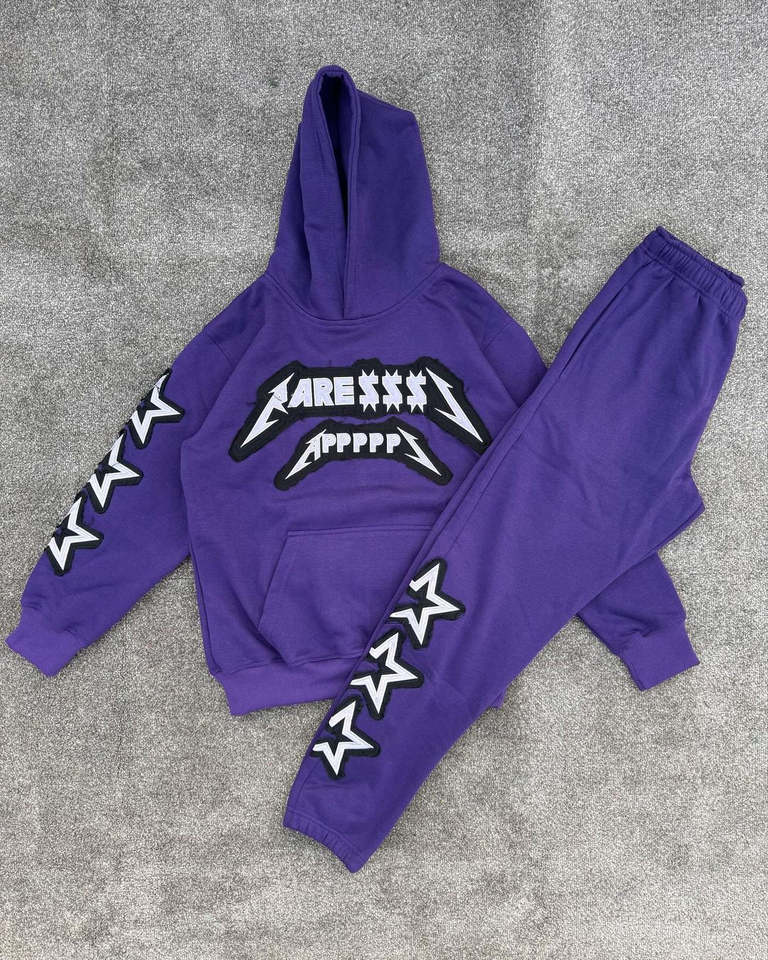 Patch de broderie en détresse personnalisé survêtement à capuche ensemble de pantalons de survêtement Streetwear soleil pierre délavée à l'acide unisexe 100% coton