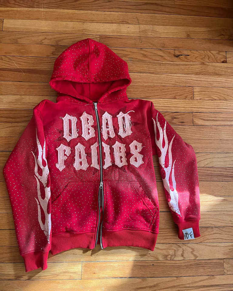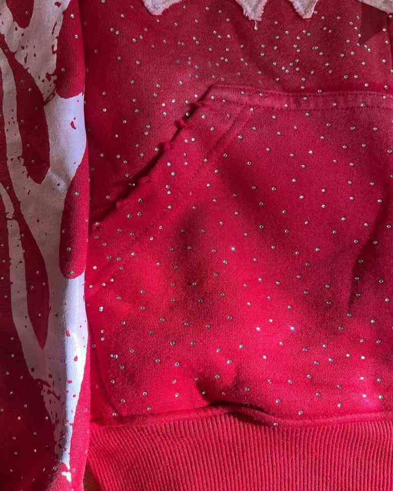 Patch de broderie personnalisé en détresse veste unisexe avec fermeture éclair en strass 500GSM sweats lavés en éponge française sweats à capuche délavés au soleil