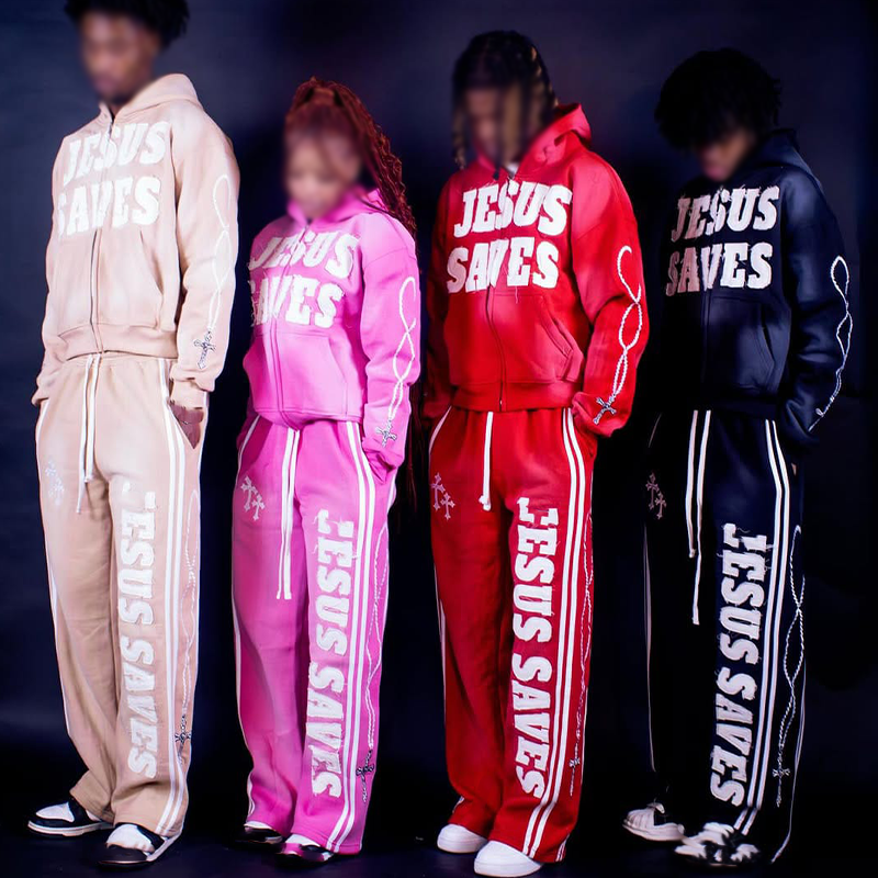 Custom Distressed Embroidery Zip up Hoodie Sweatpants Set Mens Manufacturer Tracksuit Rhinestone Sun Faded Acid Wash Sweatsuit