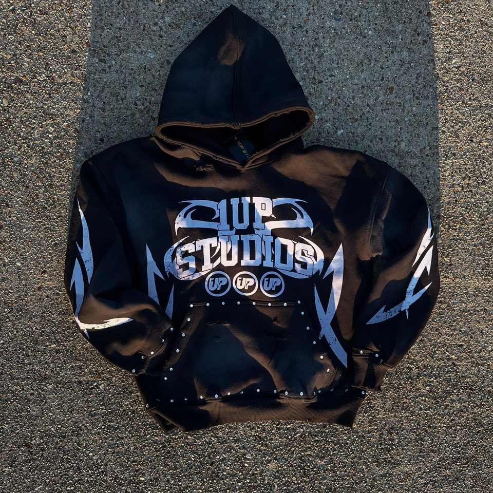 2026 Sweat à capuche pour homme personnalisé, broderie vieillie, motif graphique, en molleton de coton épais, coupe oversize, effet délavé à l'acide vintage