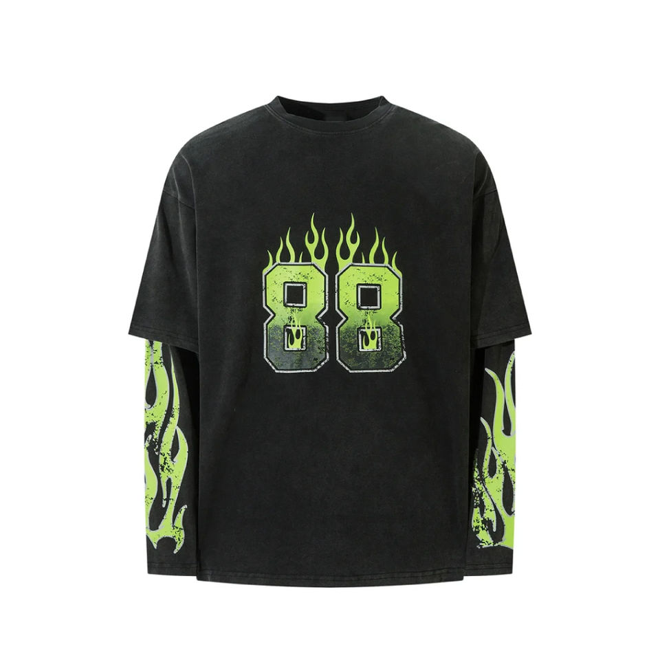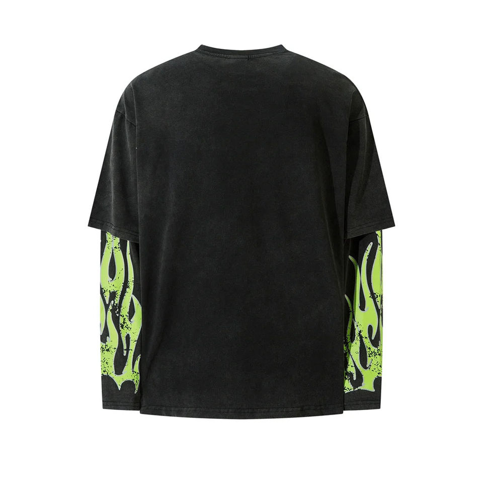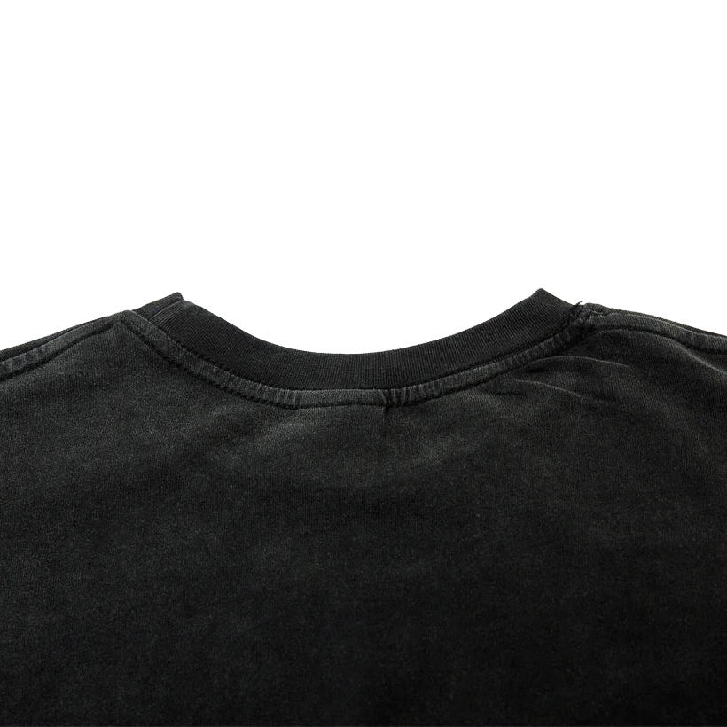 T-shirts pour hommes surdimensionnés en coton peigné 100% à manches longues, double couche, coupe courte, effet délavé, avec impression personnalisée vieillie