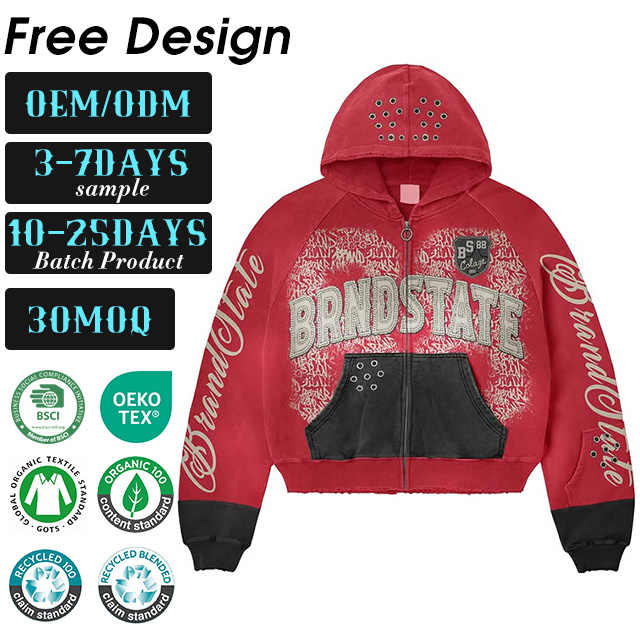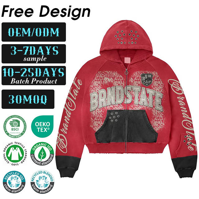 Sweat à capuche personnalisé pour homme, en coton 100% 500g, avec fermeture éclair, doublure double couche, motif dessin animé, en polaire écologique, effet délavé à l'acide