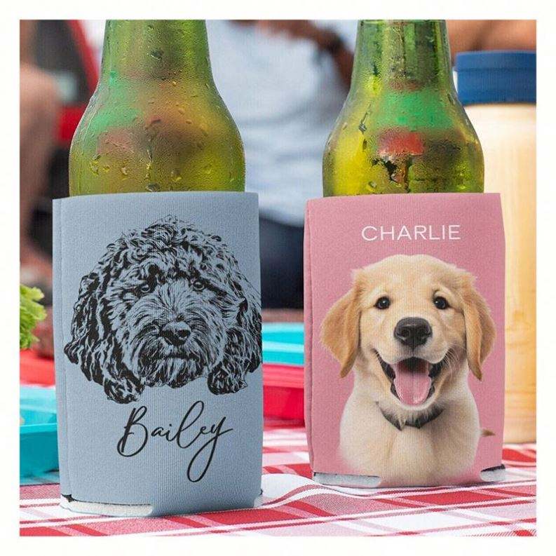 Refroidisseur de canettes personnalisé pour chien avec portrait d'animal personnalisé, croquis unique, photographie de chiot ou de chat pour les amoureux des animaux, kit promotionnel
