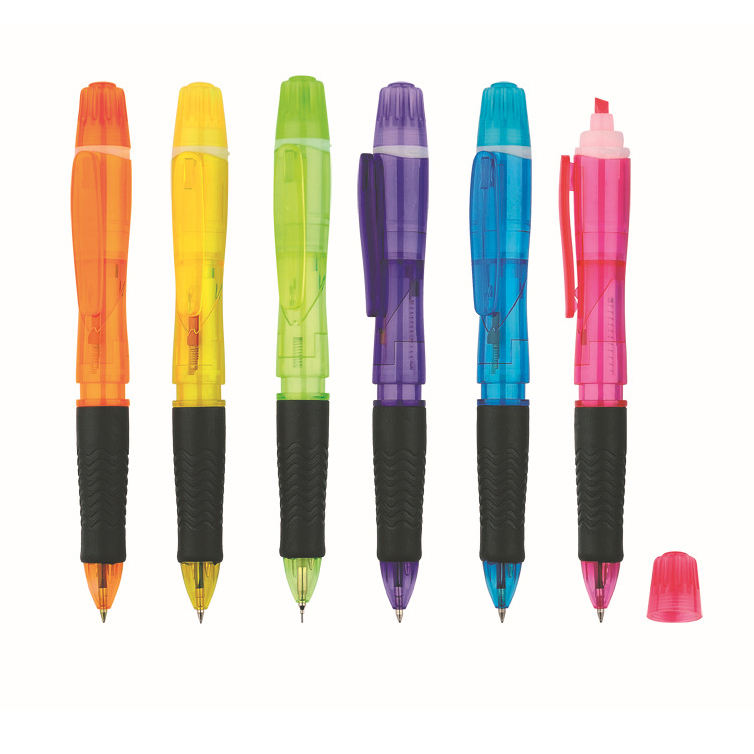 Stylos à bille multifonctions 2 en 1 à double tête personnalisés avec marqueur surligneur