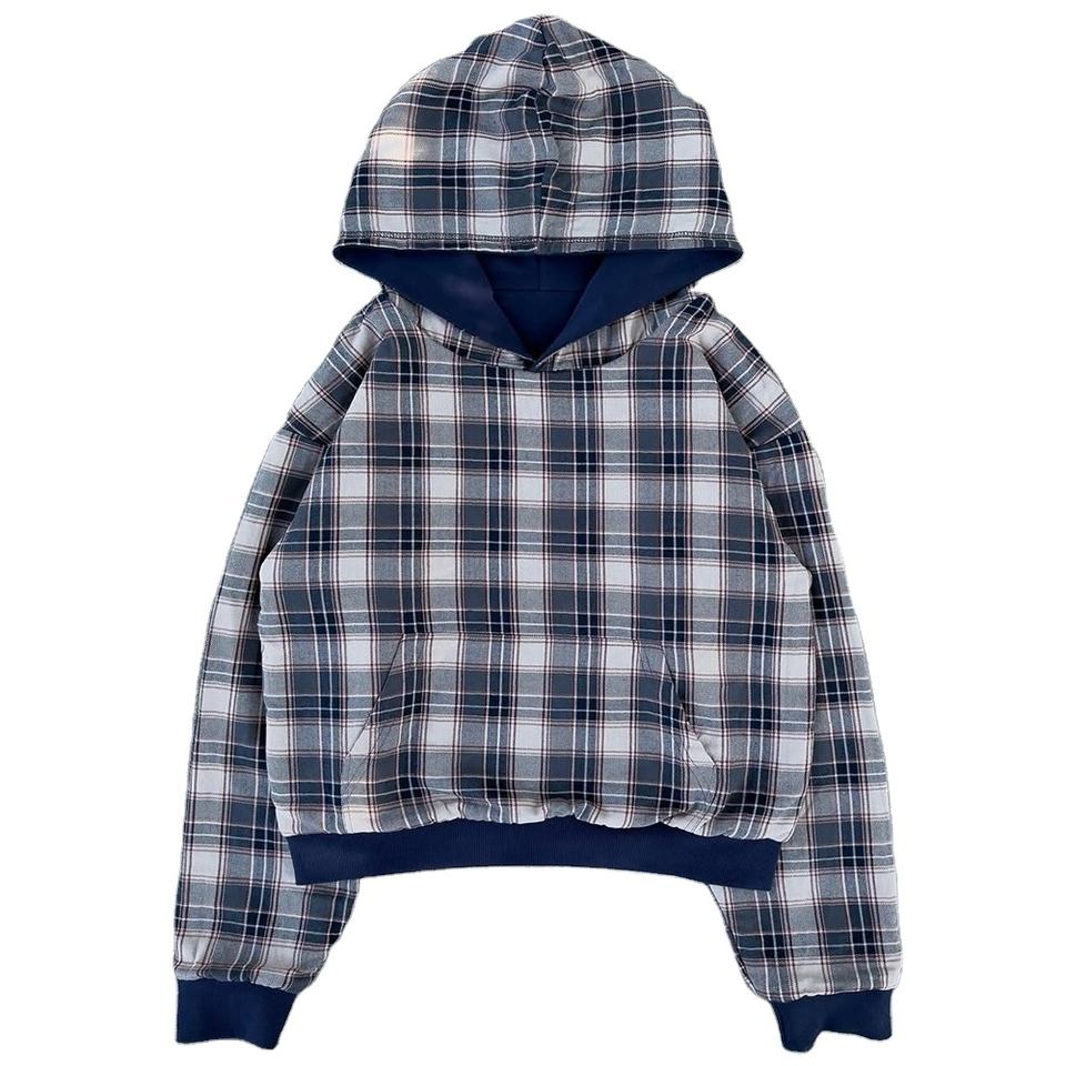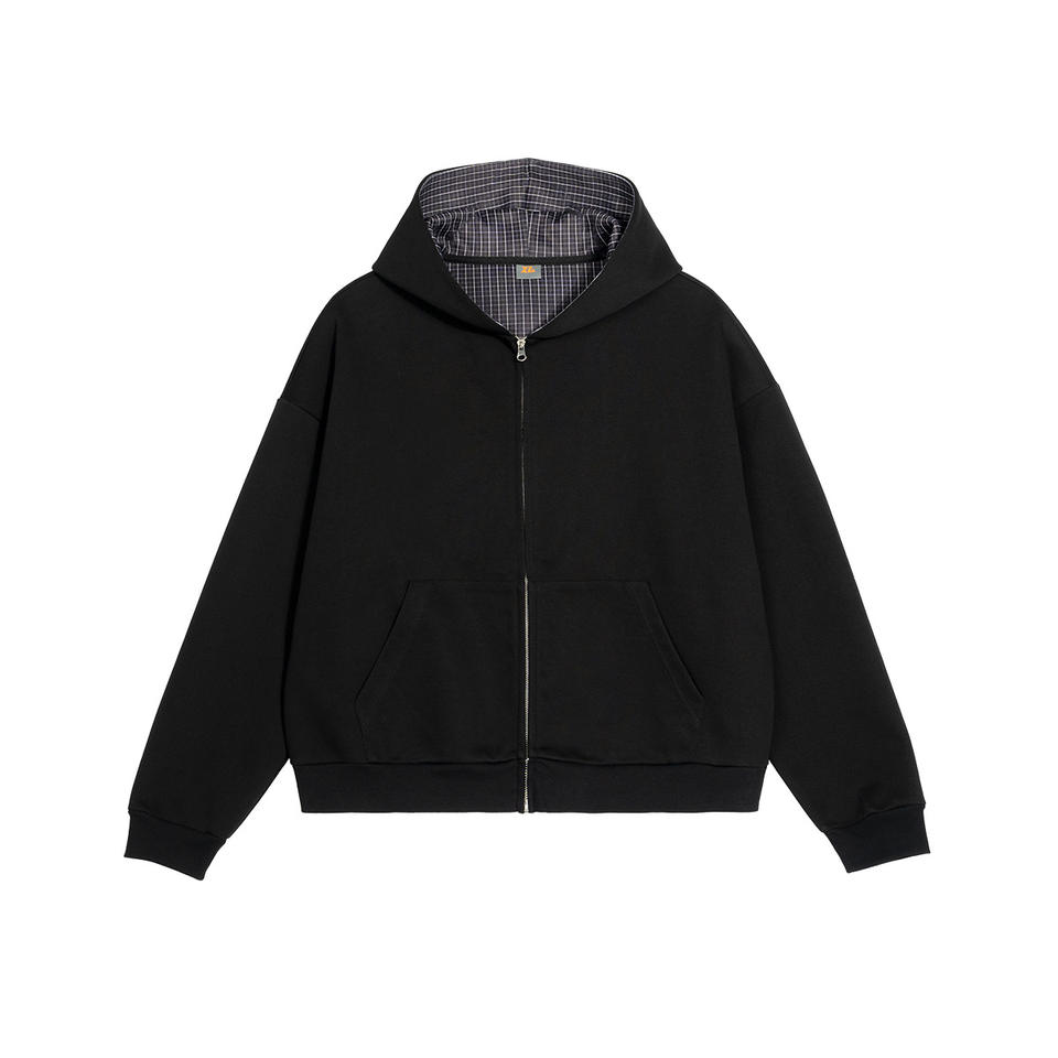 Custom Double Layer Reversible Hoodie Plaid Flannel Lined Zip Up Hoodie Heavyweight Cotton Streetwear Reversible Zipper Jacket