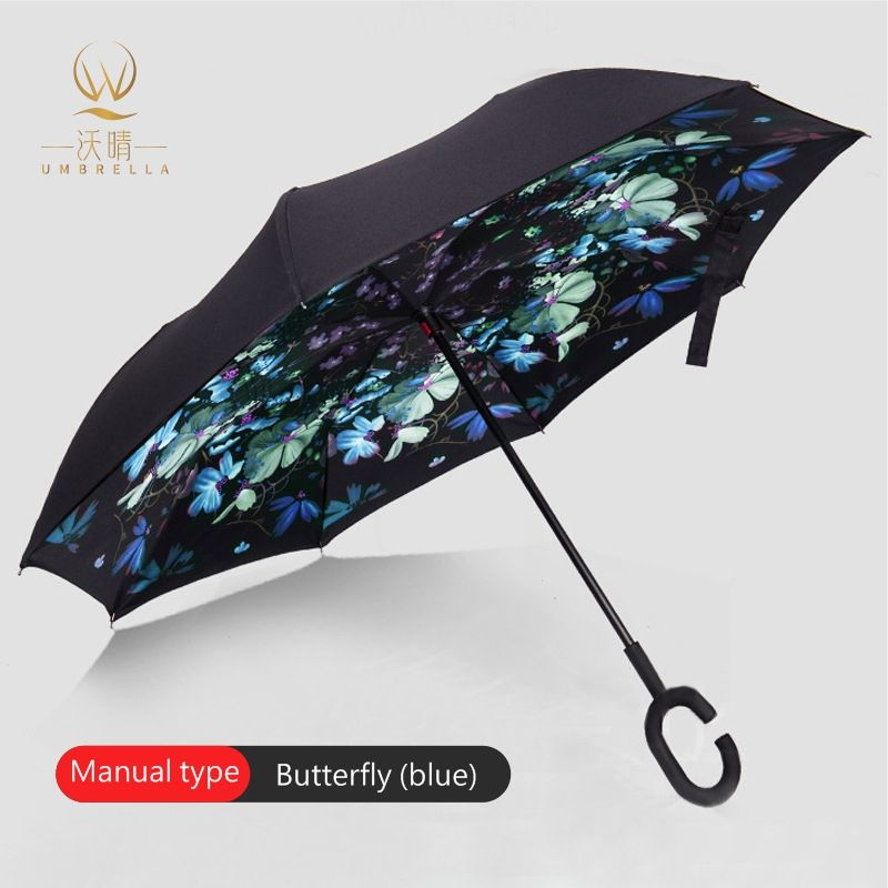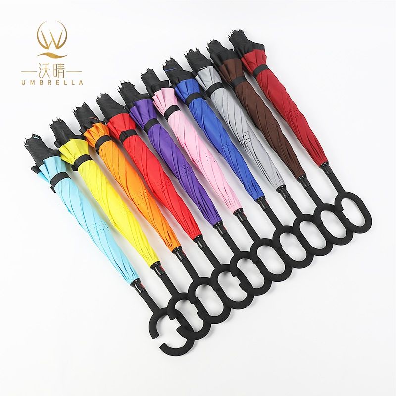 Parapluie droit personnalisé double couche, poignée en C, design minimaliste, inversé, manuel, 190T, 8 baleines, cadeaux d'affaires
