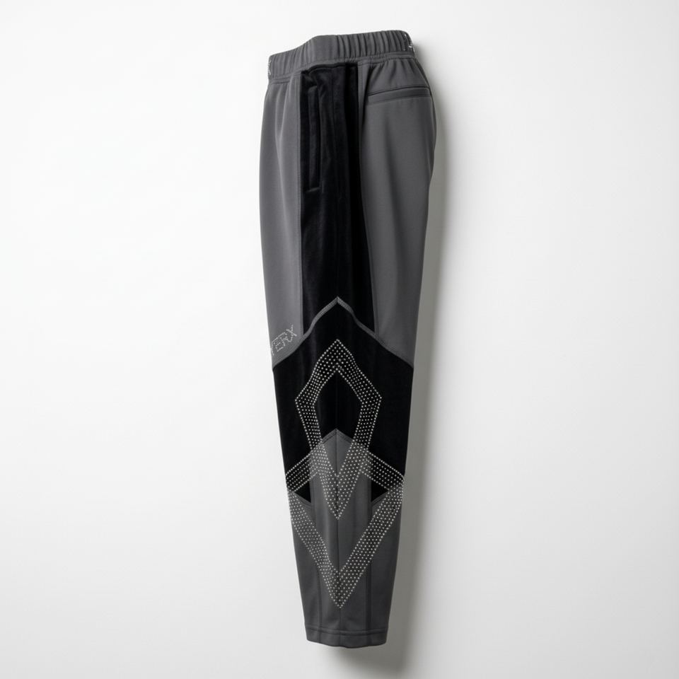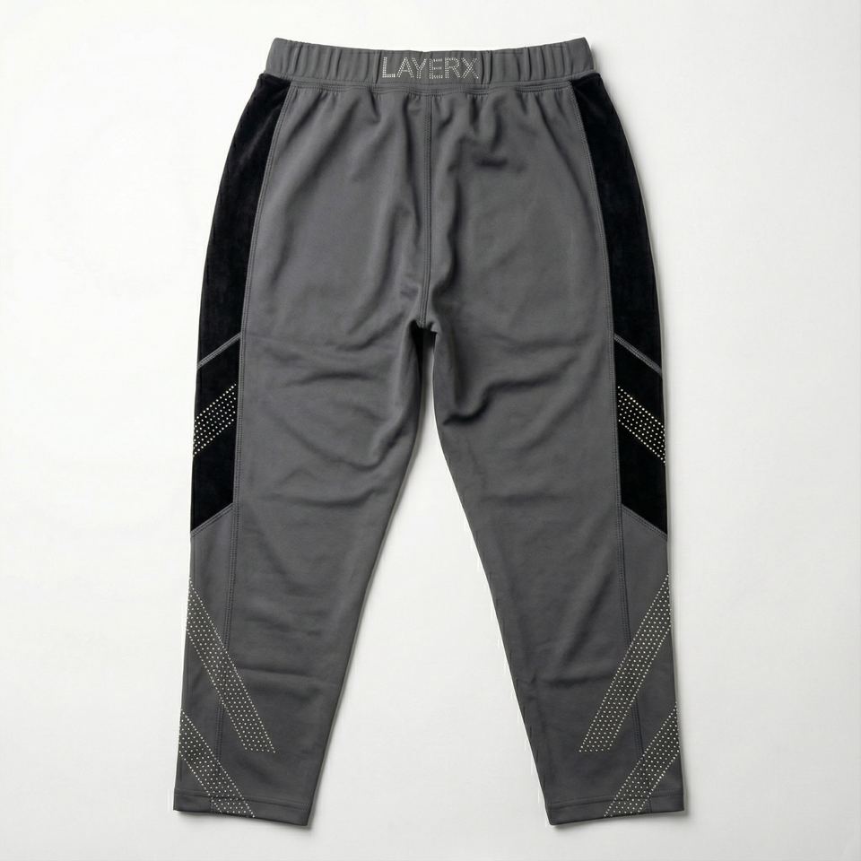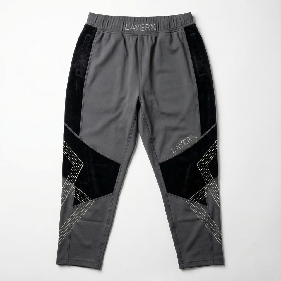 Pantalon de survêtement court gris pour homme, style techwear, en toile et velours, orné de strass thermocollés, taille élastique, streetwear