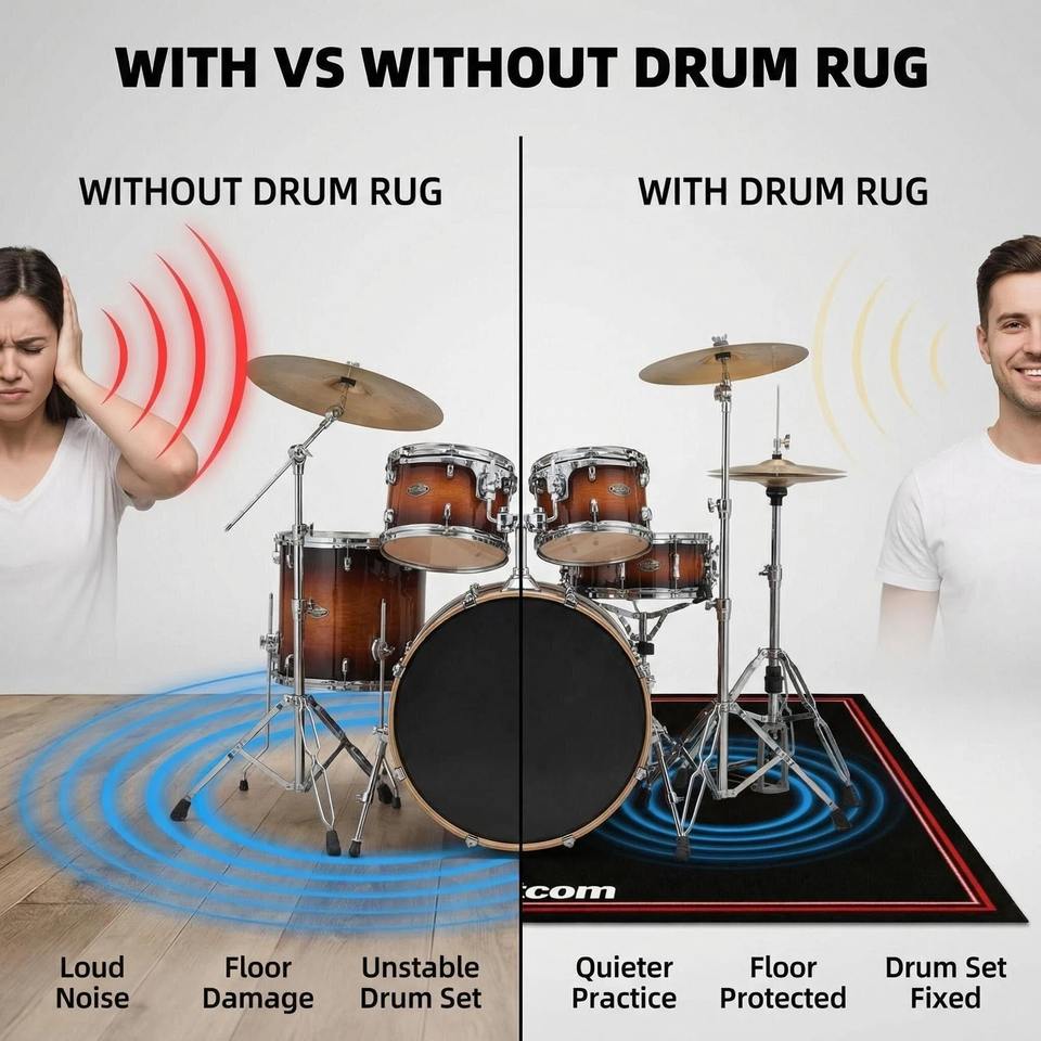 Tapis de batterie personnalisé, tapis musical, tapis insonorisant pour batterie, protection du sol avec logo