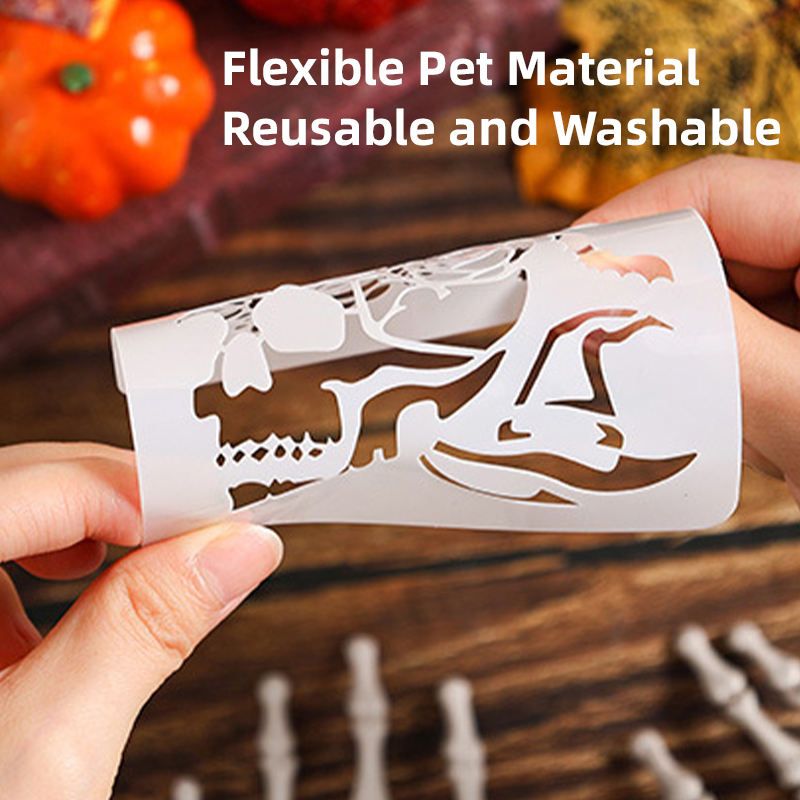Pochoirs durables et flexibles pour animaux de compagnie en plastique découpé au laser pochoirs clairs en mylar de citrouille d'Halloween pour modèles de peinture