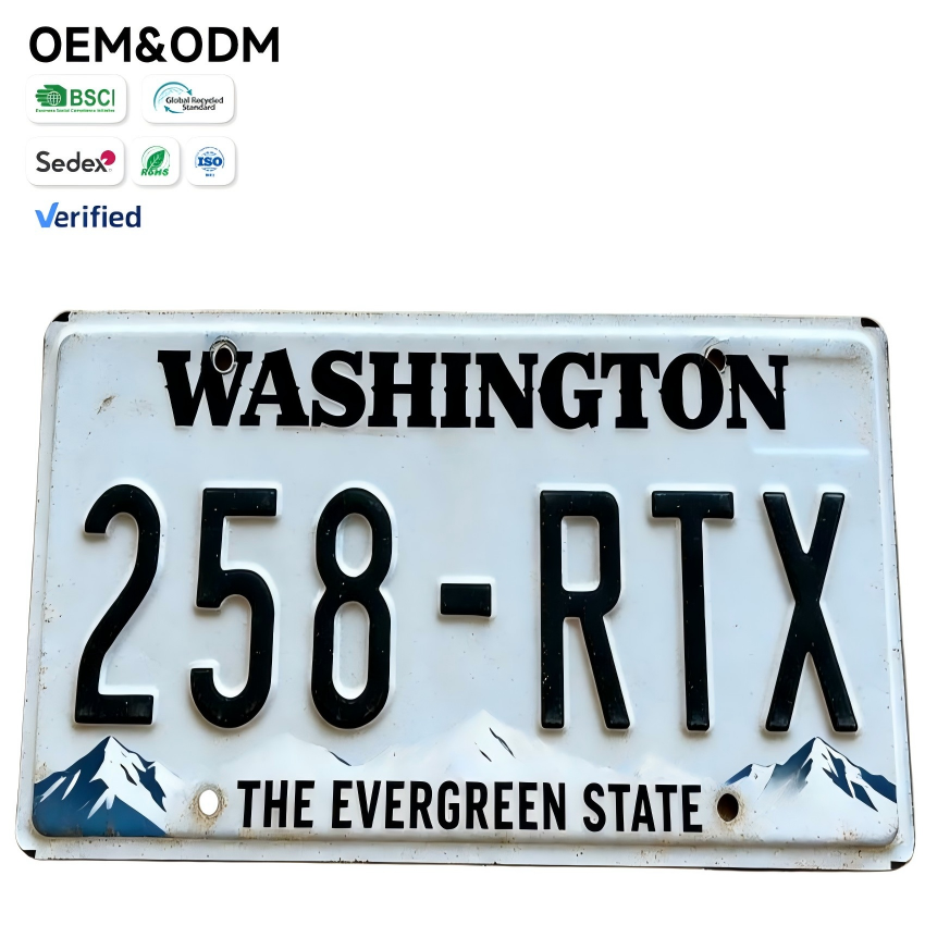 Plaque d'immatriculation décorative en fer durable sur le thème de Washington, personnalisable, pour l'Amérique du Nord, avec remise sur commande en gros et livraison rapide