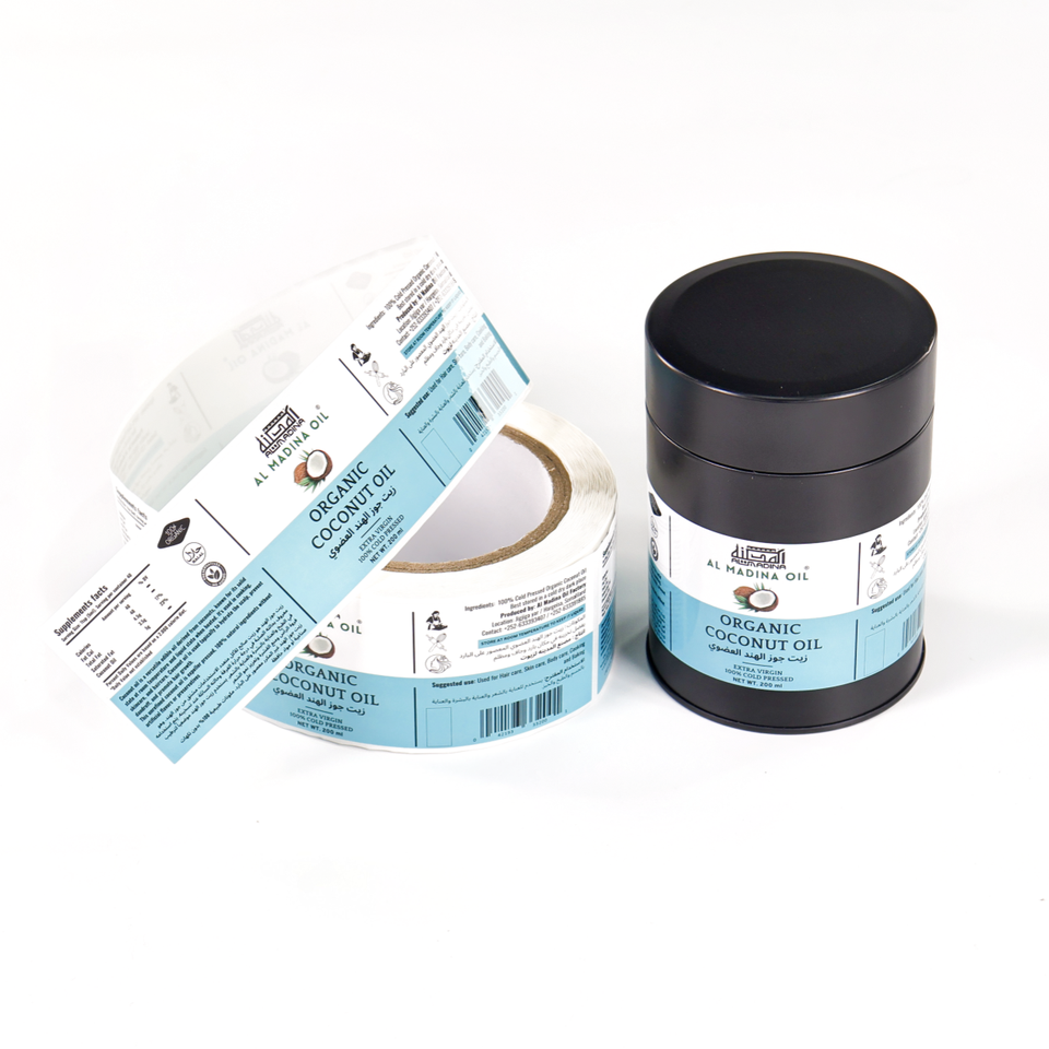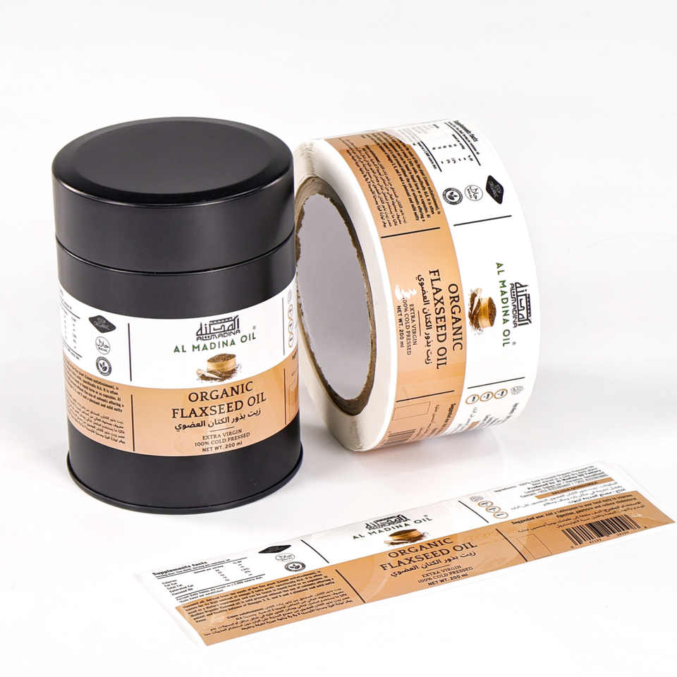 Étiquettes autocollantes en vinyle personnalisées, durables, en rouleau, imprimées, résistantes à l'eau et à l'huile, pour bouteilles de jus, étiquettes de sécurité alimentaire