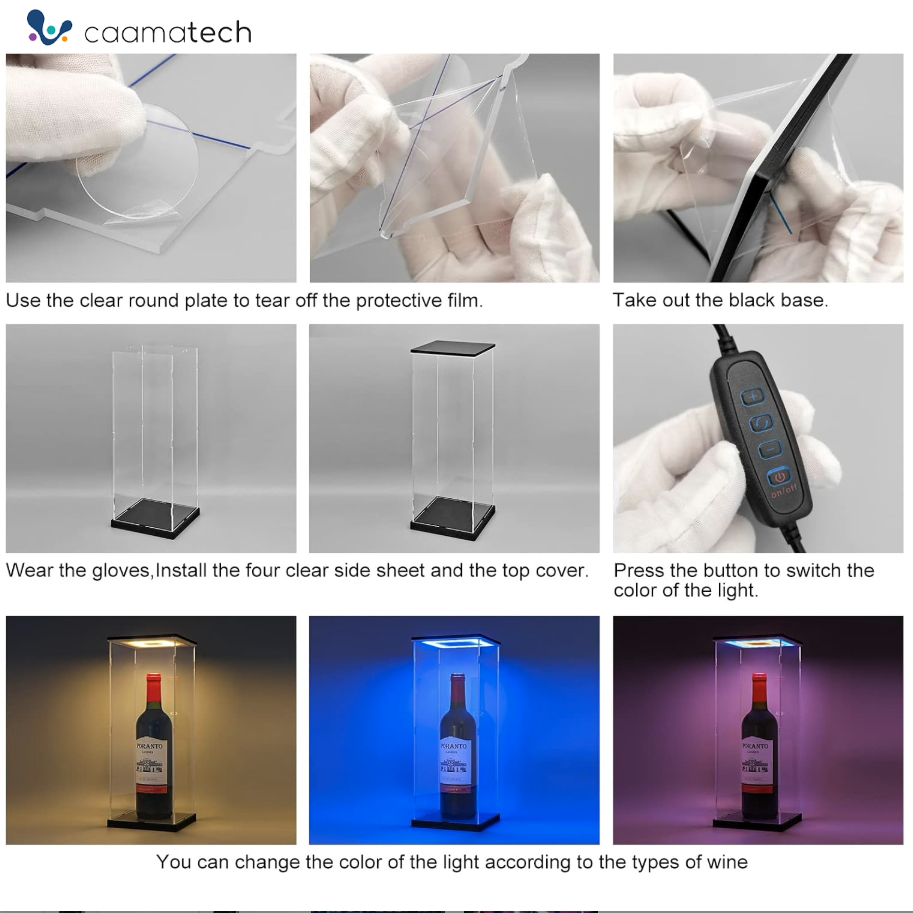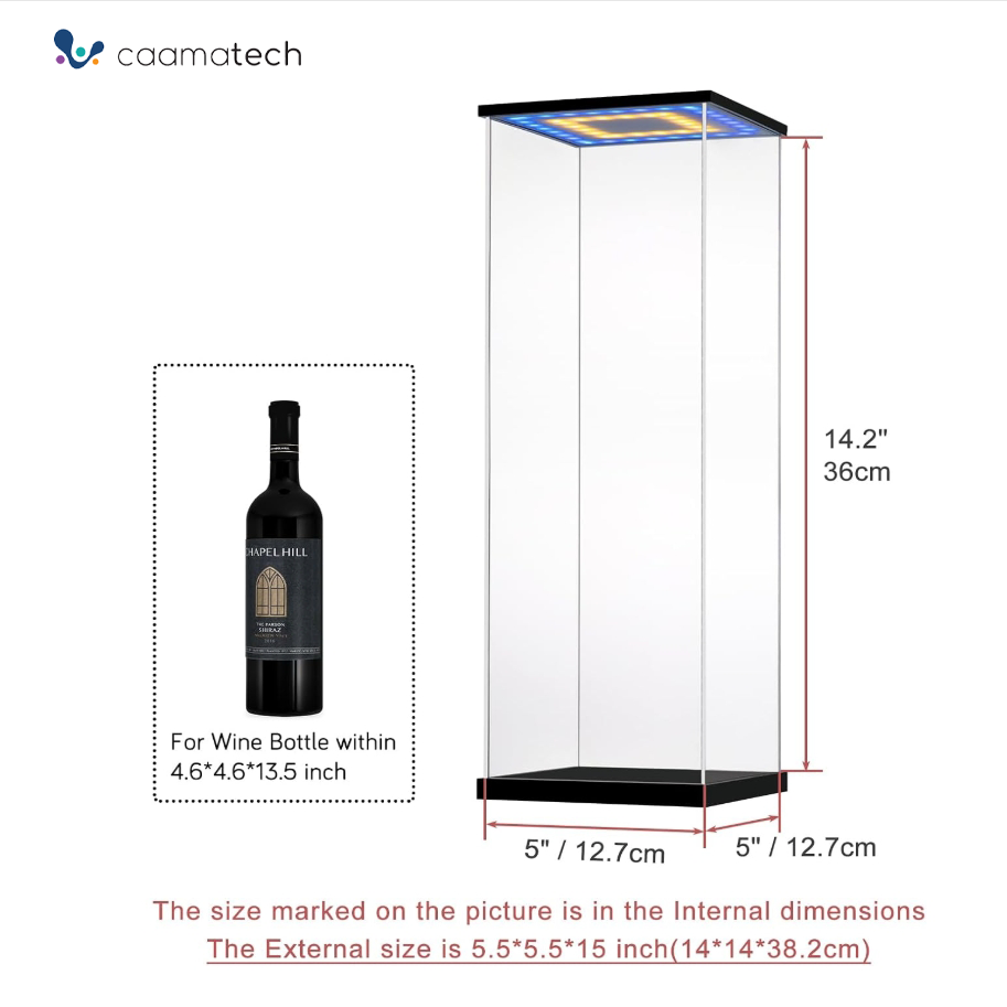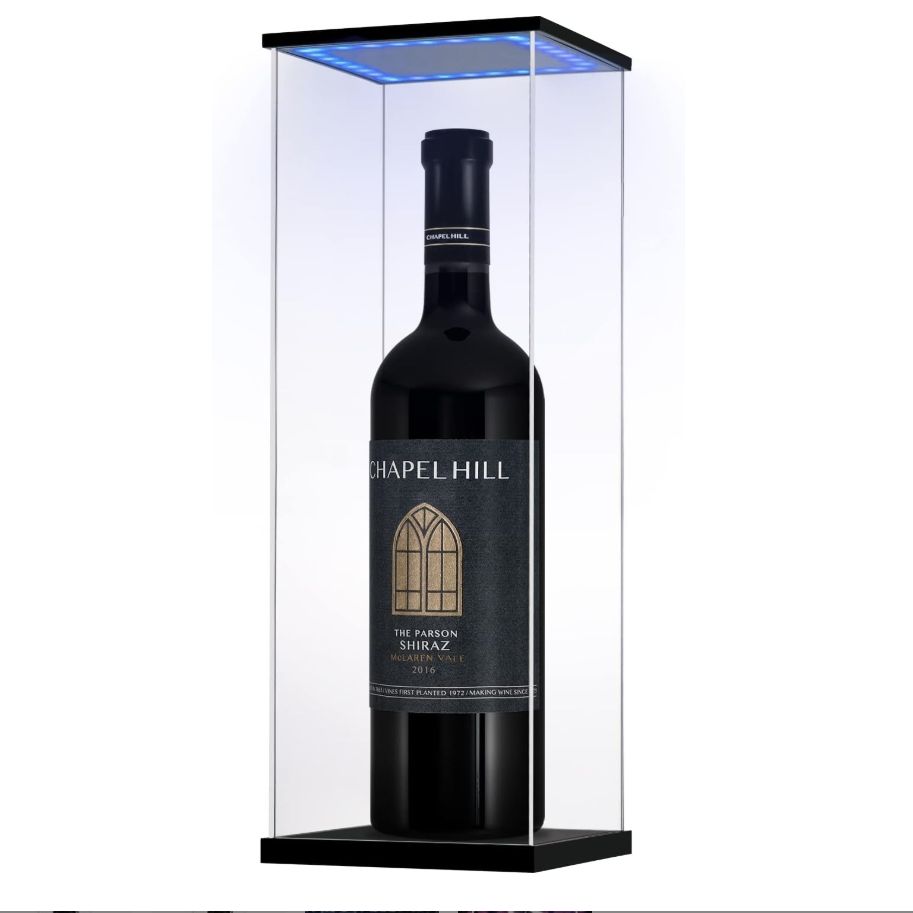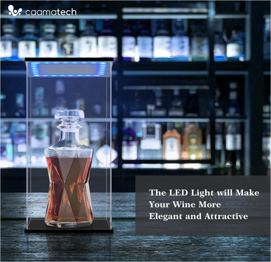 Boîte de présentation de bouteille de vin en acrylique réglable anti-poussière personnalisée avec lumière LED pour vin rouge, bière et whisky