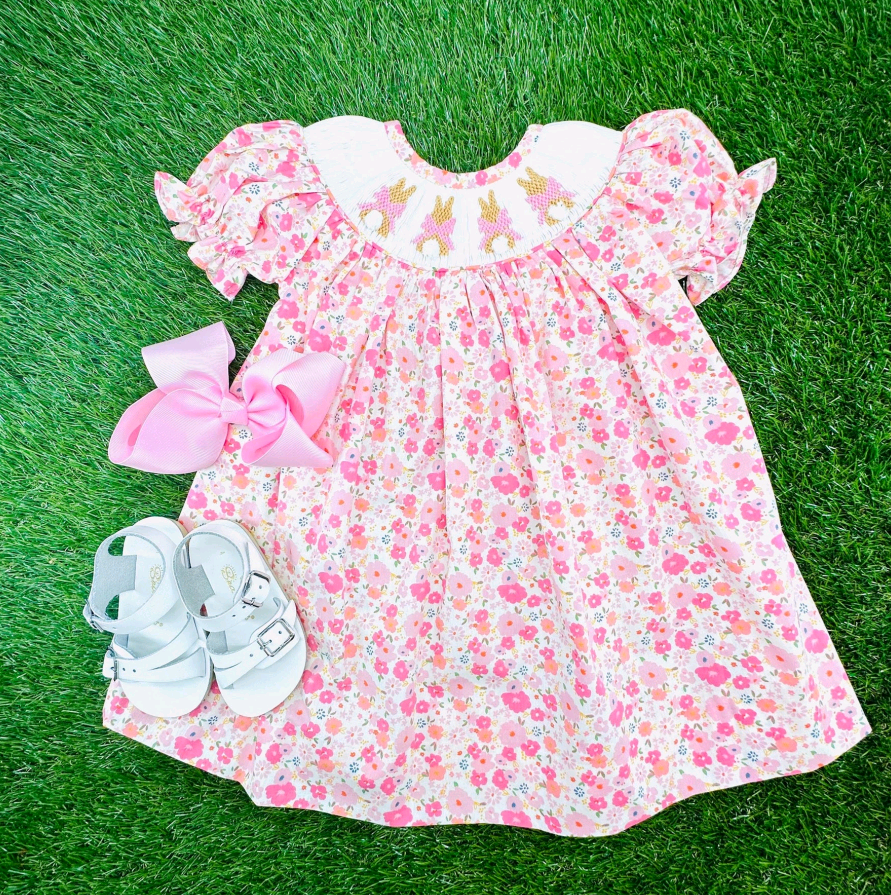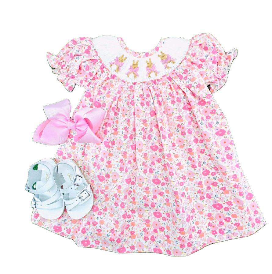Combinaison à bulles pour bébé et tout-petit, motif lapin de Pâques, fleurs, smockée, boutique en gros, assorties aux sœurs, vêtements mignons pour enfants