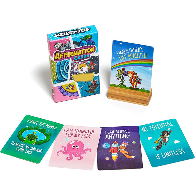 Cartes d'affirmation écologiques personnalisées Bulk Daily Positive Inspirational Messages Deck for Kids Glossy Paper Logo Box Packing