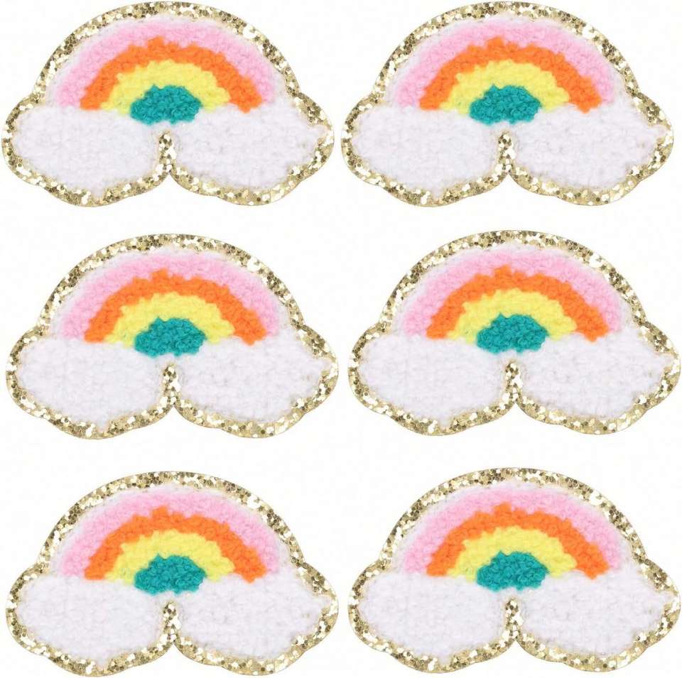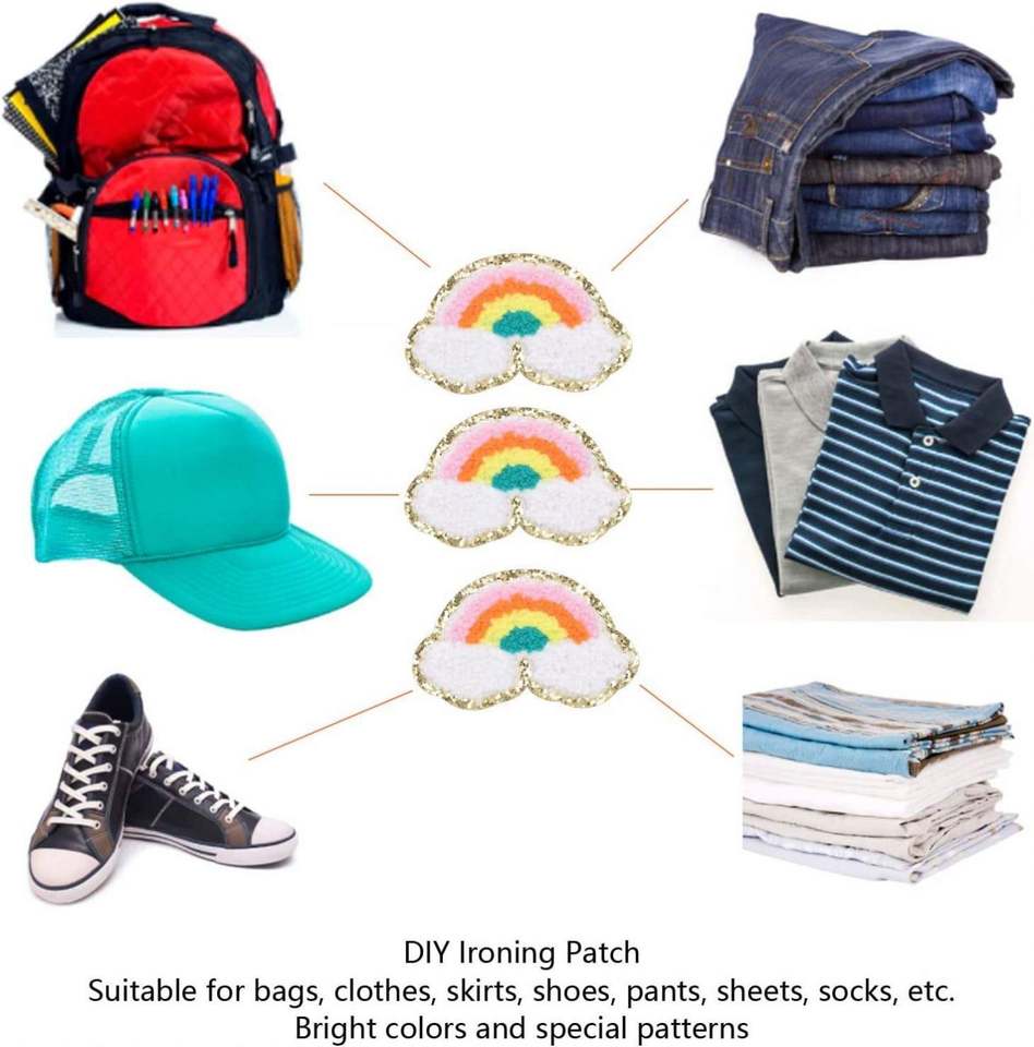 Broderie de vêtements en chenille brodée à sequins, motif arc-en-ciel, auto-adhésive, personnalisable, écologique, à poser soi-même, pour la réparation de vêtements