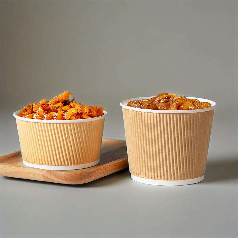 Bol à soupe à salade jetable écologique personnalisé à paroi unique conception ondulation gobelet en papier kraft de qualité alimentaire avec revêtement en PE avec couvercle