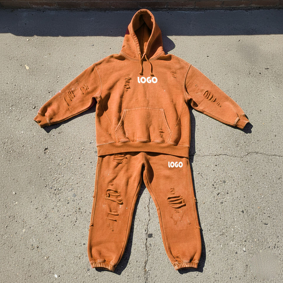 Ensemble survêtement streetwear homme hiver grande taille, sweat à capuche et pantalon de jogging patchwork personnalisé, écologique et vieilli