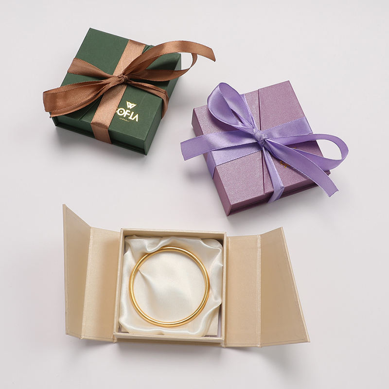 Boîte à bijoux en carton écologique personnalisée à double ouverture, carrée, avec ruban, pour collier, bague, boucles d'oreilles, emballage cadeau