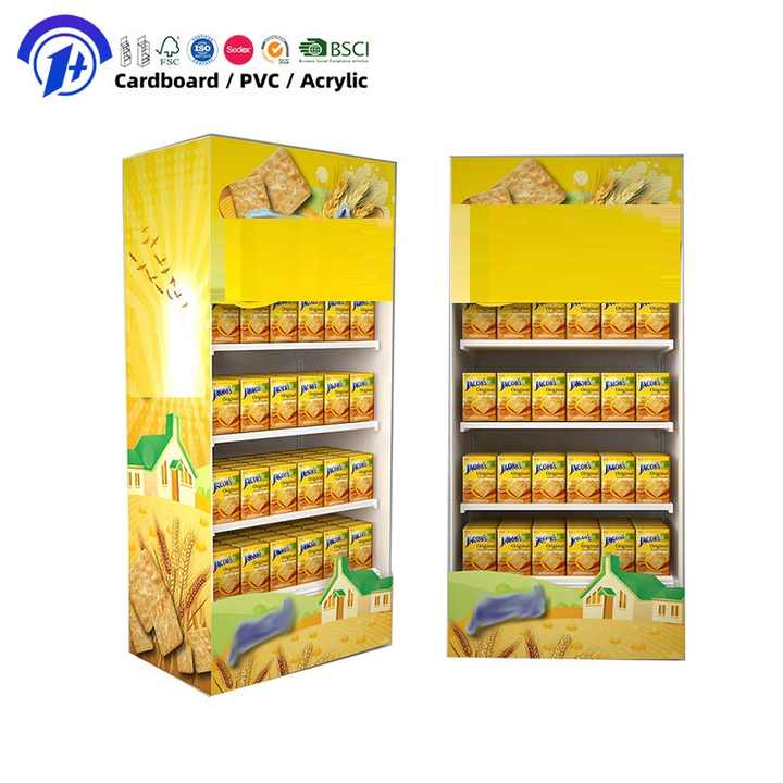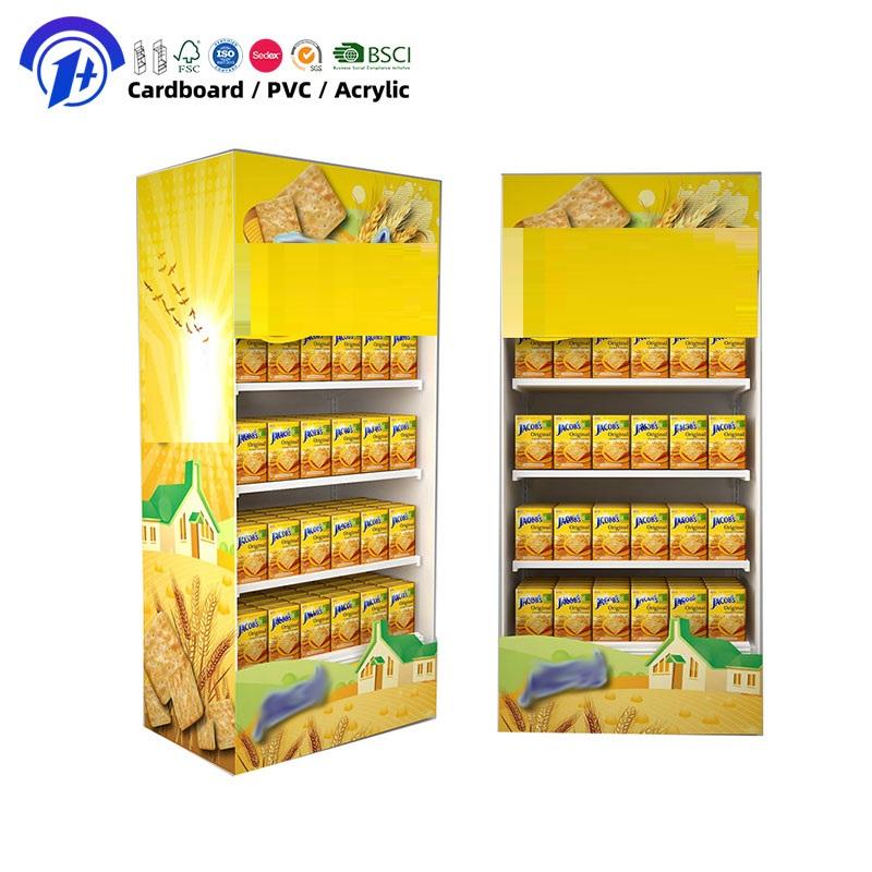 Support d'affichage en carton écologique sur pied personnalisé pour les magasins de détail, étagères en papier pour biscuits