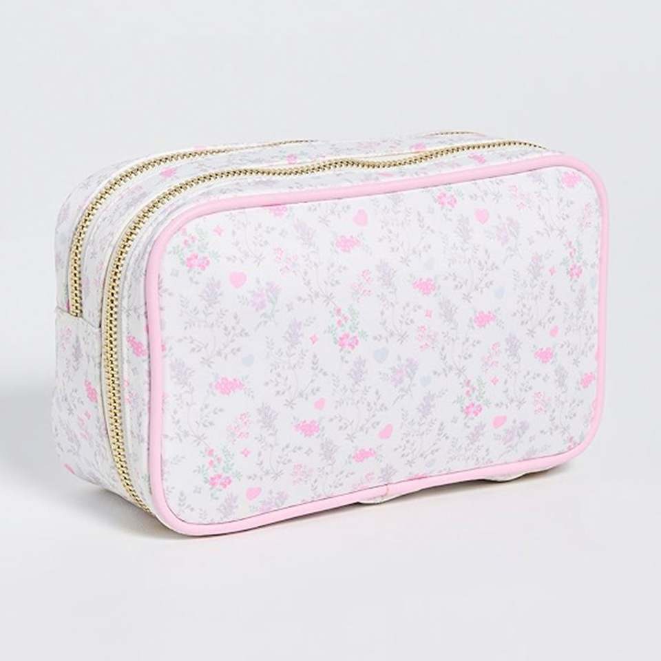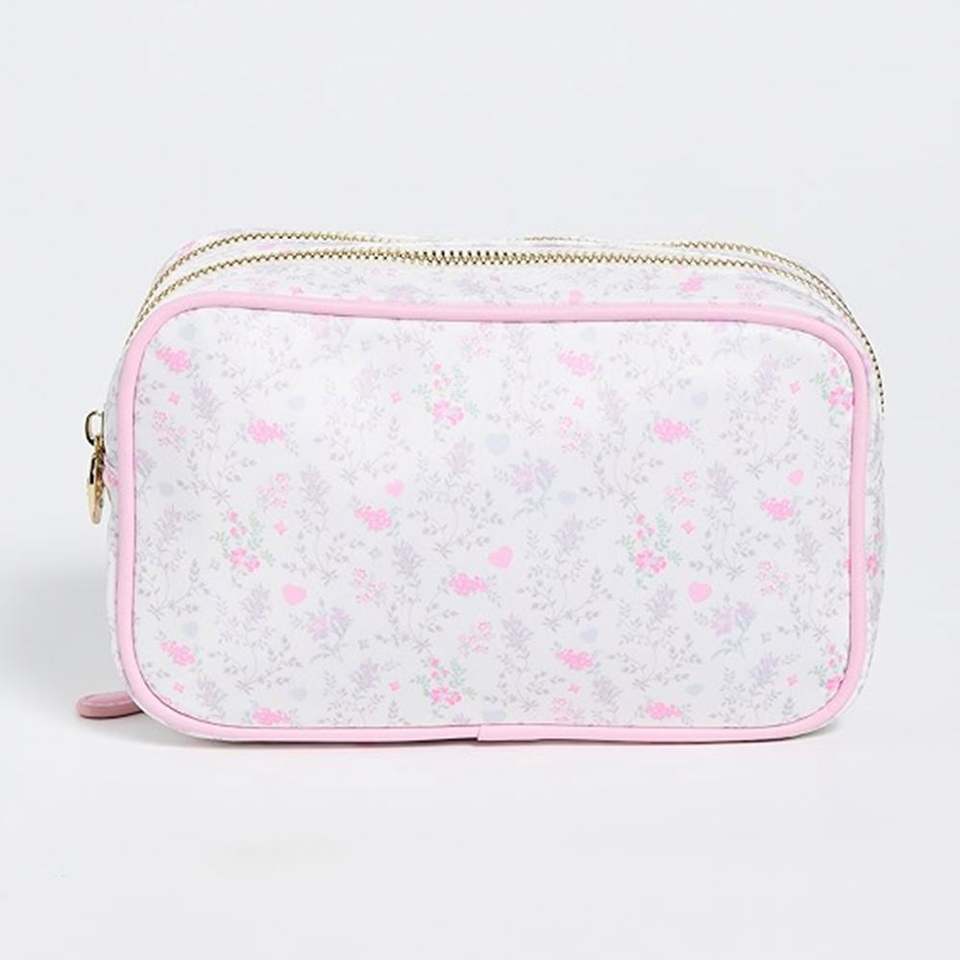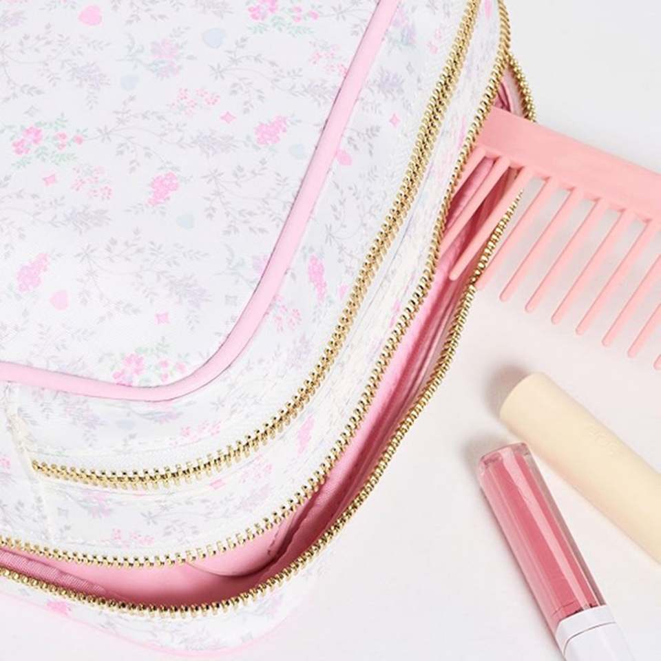 Trousse de Maquillage Florale Écologique Grande Capacité Personnalisable, Pochette Double Fermeture Éclair Pliable, Imperméable, Style Preppy, Portable pour Voyage