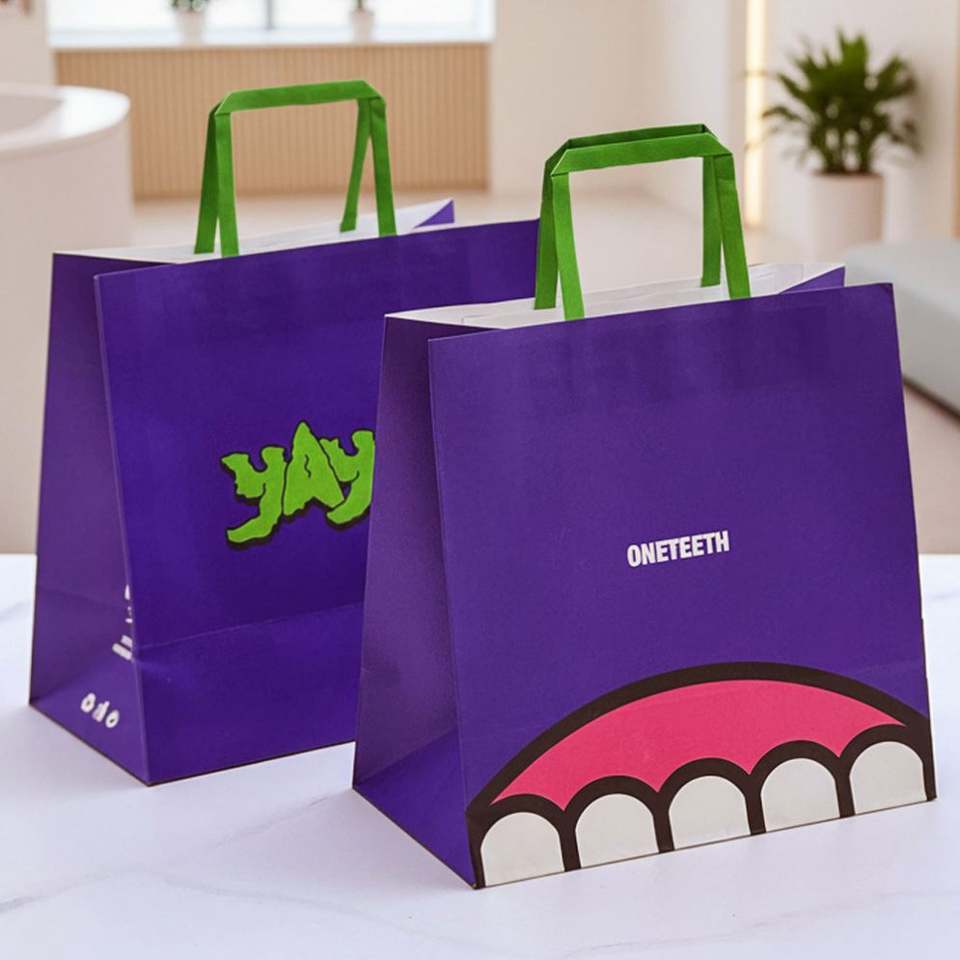 Sacs en papier kraft optique dentaire écologiques et recyclables personnalisés avec estampage, emballage cadeau en gros