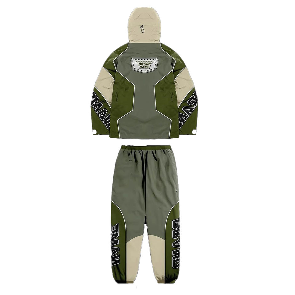 Survêtement écologique personnalisé 100% polyester Veste zippée Pantalon en nylon Bandes réfléchissantes imprimées Coupe-vent personnalisé pour ensemble