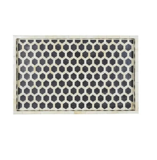Plateaux de service en bois incrusté d'os et ensembles de plateaux en métal en laiton nacré d'Inde