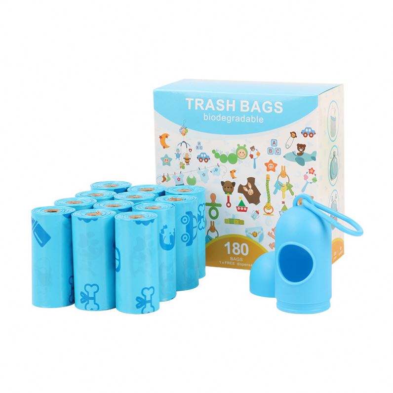 Nom du produit:Sacs à déjections canines écologiques personnalisés, 12 rouleaux avec distributeur, anti-fuite.