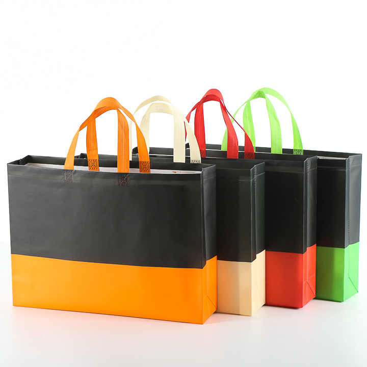 Sacs de courses personnalisés écologiques en non-tissé, color-block, recyclables, pour supermarché, fruits, vêtements, emballage d'entreprise, sacs à main bon marché