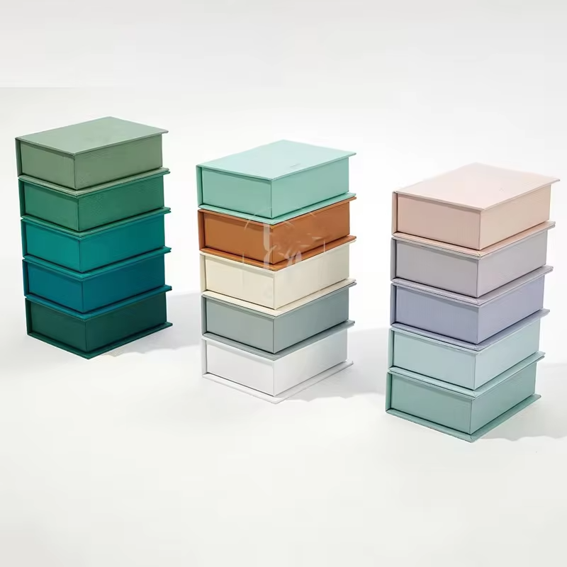 Boîte cadeau pour bijoux en carton rigide écologique personnalisée, forme de livre, logo mat, fermeture magnétique 4C, estampage à chaud UV