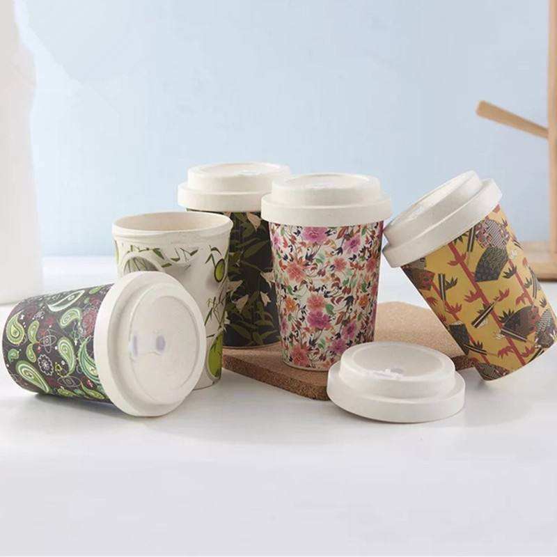 Tasse à café écologique personnalisée, tasse à café naturelle, biodégradable, réutilisable, tasse de voyage, tasse en fibre de bambou, ensemble de tasses à café avec couvercles et logo
