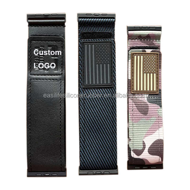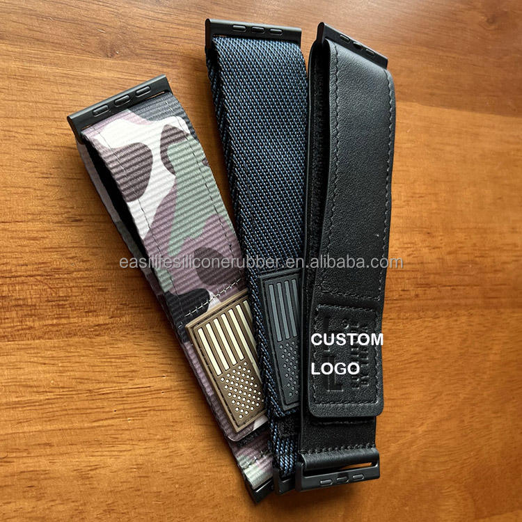Tissu élastique à boucles tressé personnalisé de remplacement en cuir de nylon tissu à boucles souples et crochets Shenzhen pour Apple Watch Band Ultra