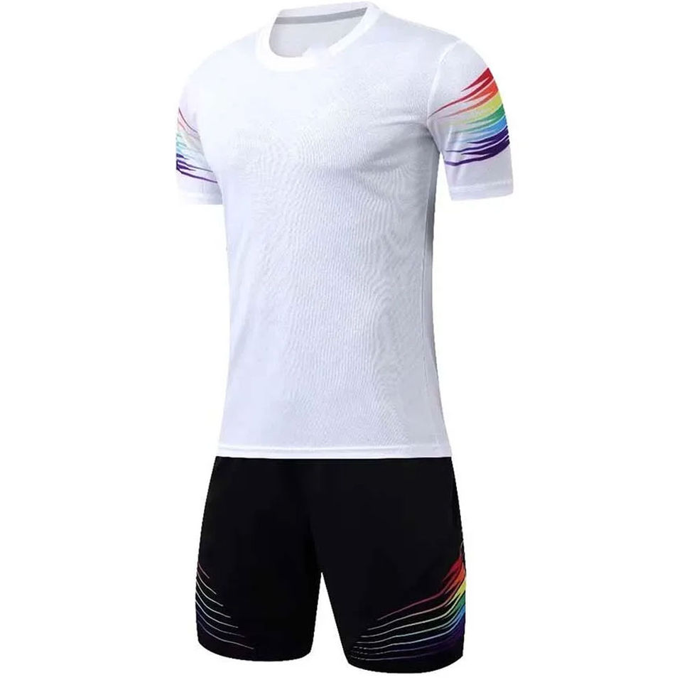 Ensemble d'uniformes de football personnalisés Elite 100% polyester maille, découpe automatisée, dégradé de couleurs, col rond, manches courtes, maillot de football et short