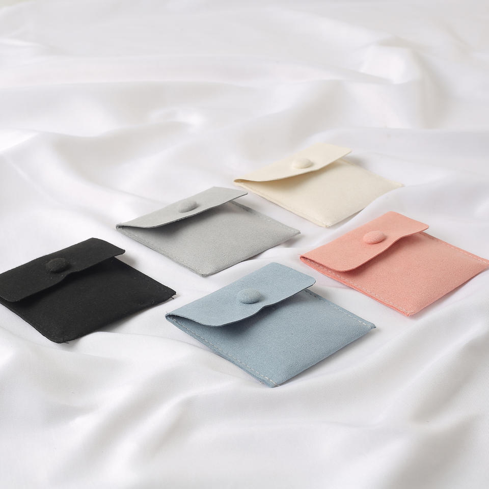 Pochette de voyage en microfibre de velours personnalisée pour femmes avec logo en relief, fermeture à bouton-pression pour colliers et boucles d'oreilles