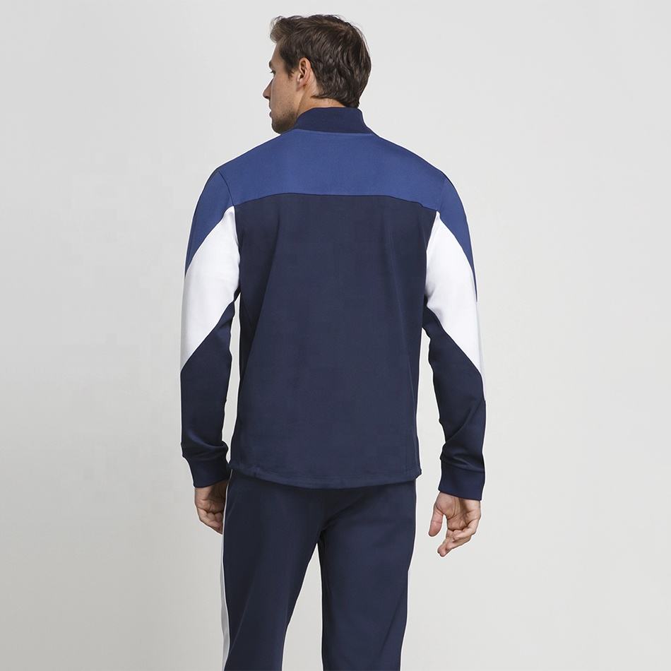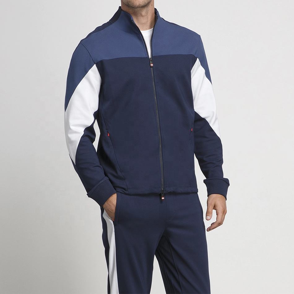 Survêtement d'entraînement pour hommes en coton polyester vierge gaufré personnalisé avec 2 fermetures à glissière et blocs de couleurs