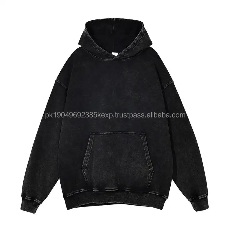 Sweats à capuche épais double couche en relief personnalisés 500gsm 100% coton French Terry No String Hoodie Blue Acid Wash