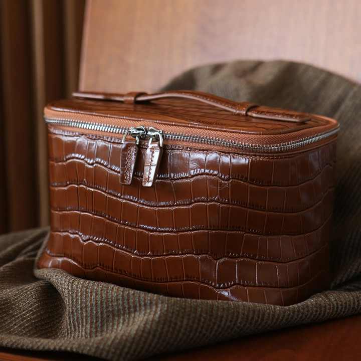 Sacs à cosmétiques avec logo en relief personnalisé Trousse de toilette en PU à motif crocodile et motif serpent Trousse de maquillage pour hommes en cuir brillant et imperméable