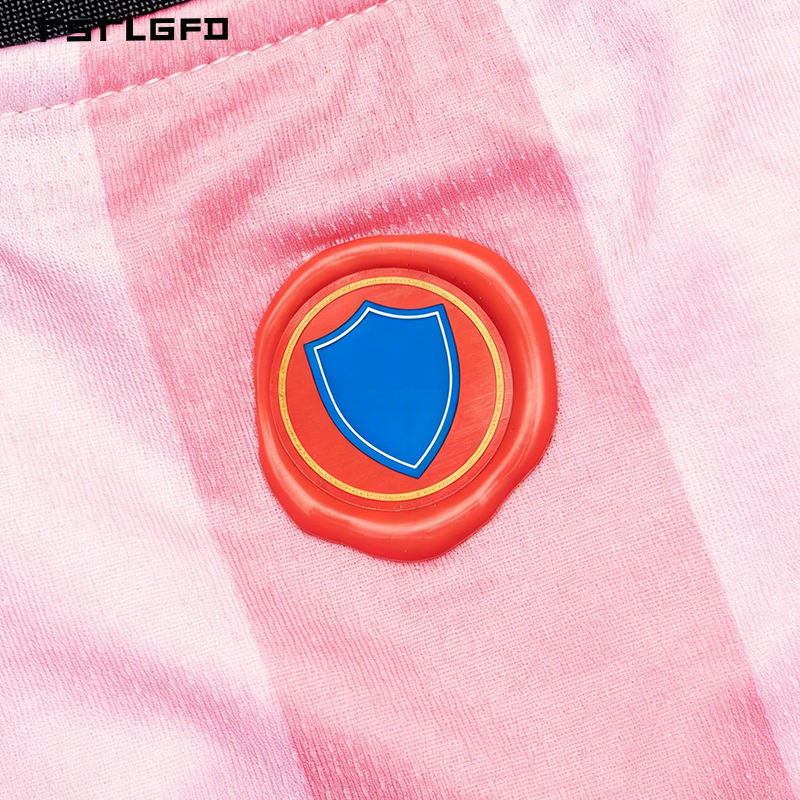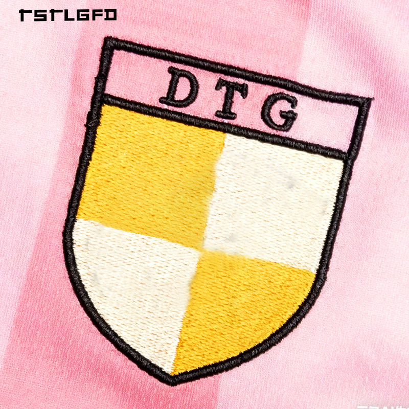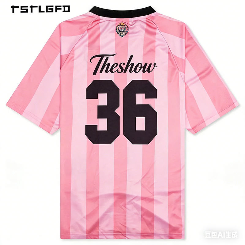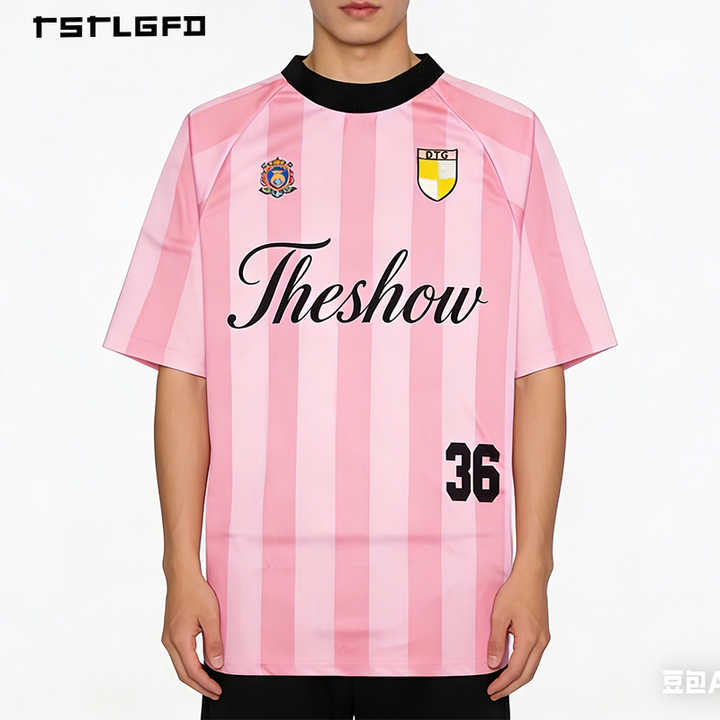 Maillot de football personnalisé en coton 100% à rayures gaufrées, col rond, avec étiquettes tissées et écussons brodés, écologique