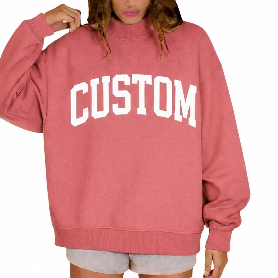 Custom Embroidered Eco-Friendly Polyester/Cotton Fleece Oversized Women's Mock Neck Sweatshirt Quick Dry Breathable Fabric