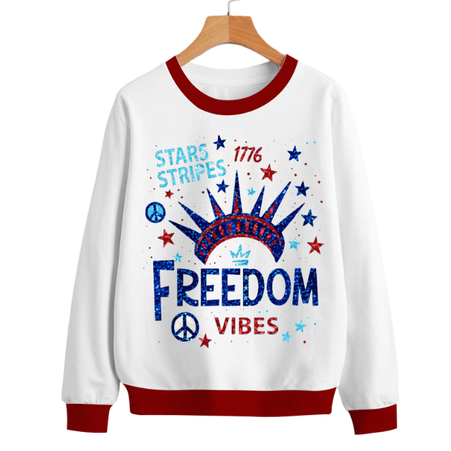 Sweat-shirt décontracté surdimensionné à col rond pour femme, brodé sur mesure, avec sequins et motifs du 4 juillet, fait main, 2 couleurs, vente en gros