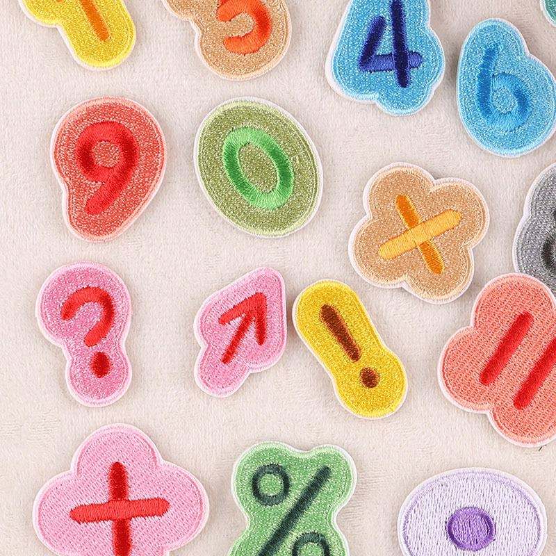 Custom Embroidered Funny Colors Number Symbol Patches for Kids Clothing Bags