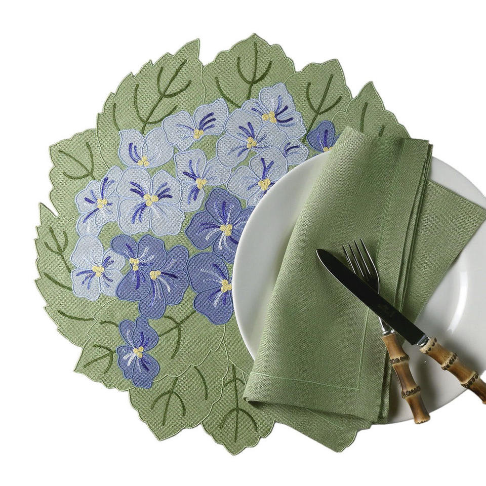 Set de table et serviette de table en tissu de lin vert brodé personnalisé joli motif de fleur en forme de feuille pour mariage au restaurant à la maison