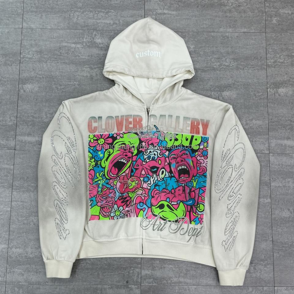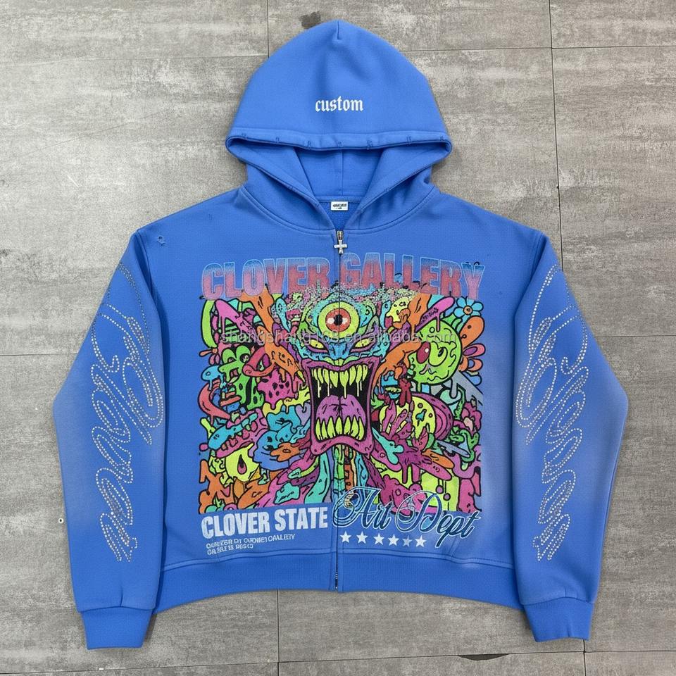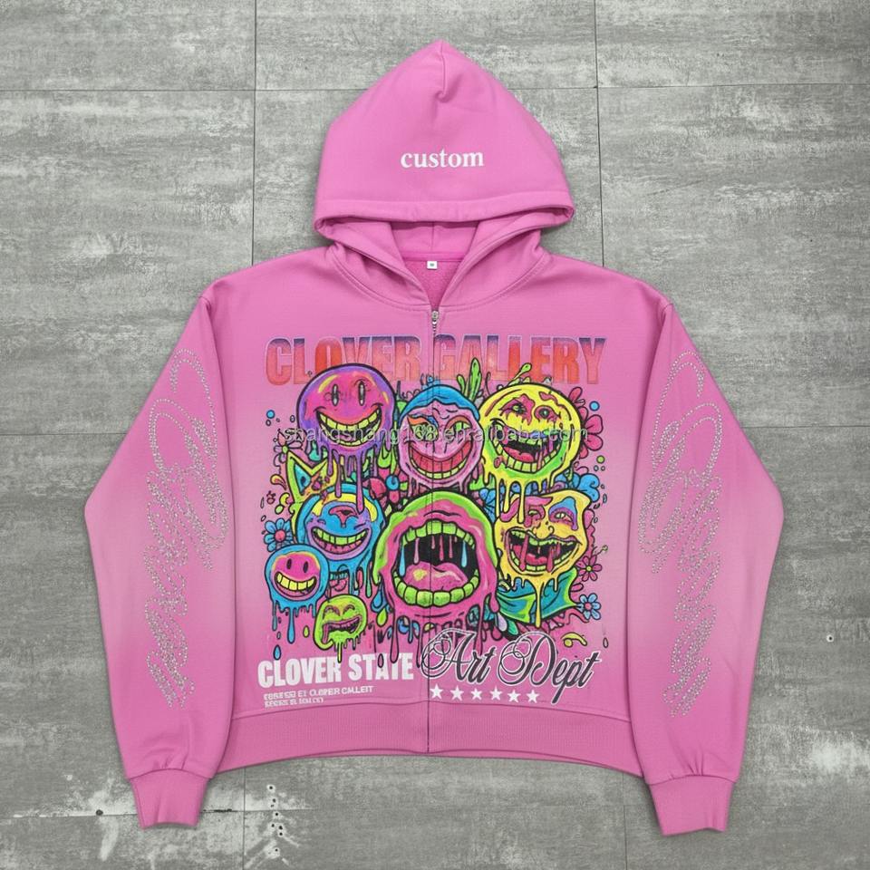 Sweat à capuche thermique d'hiver 100% coton, personnalisé avec broderie et strass, en molleton bouclette épais, coupe courte, orné de cristaux de luxe