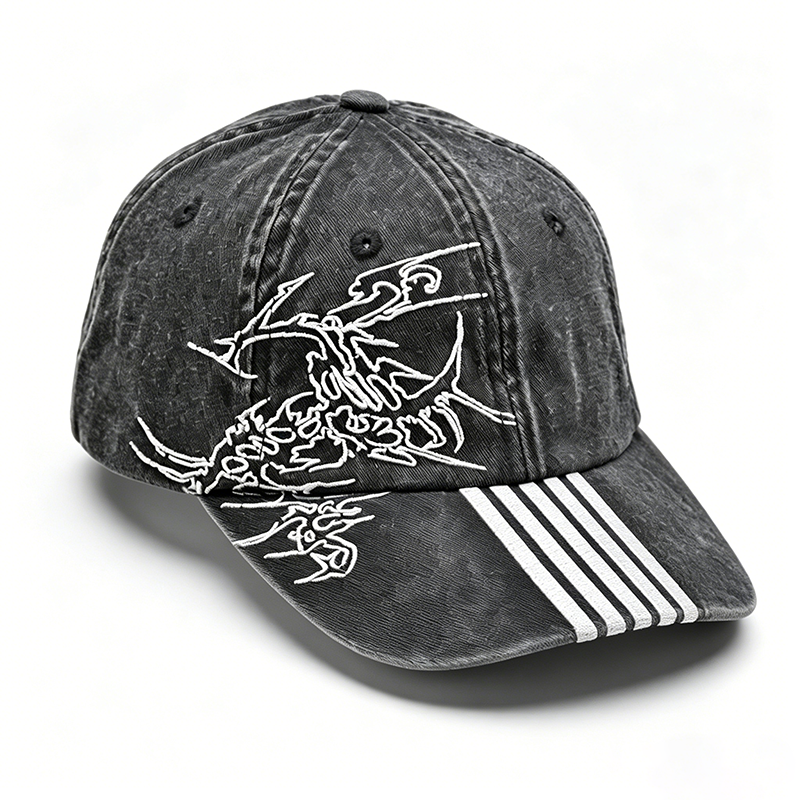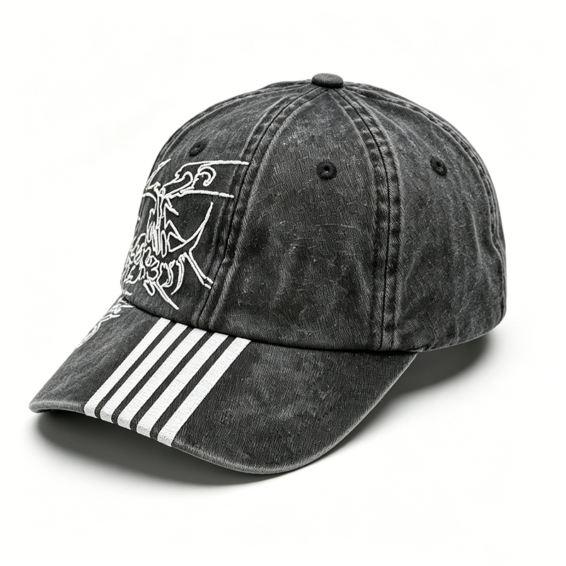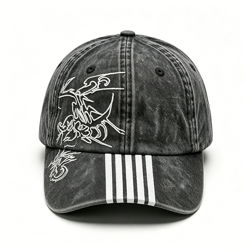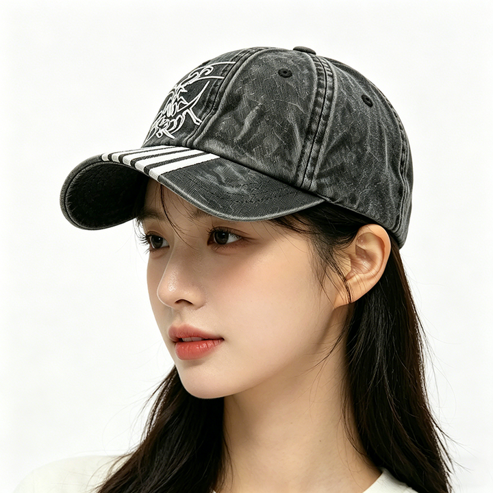 Casquette unisexe en toile personnalisée brodée, style vintage délavé et vieilli, 6 panneaux, rétro streetwear, avec logo imprimé