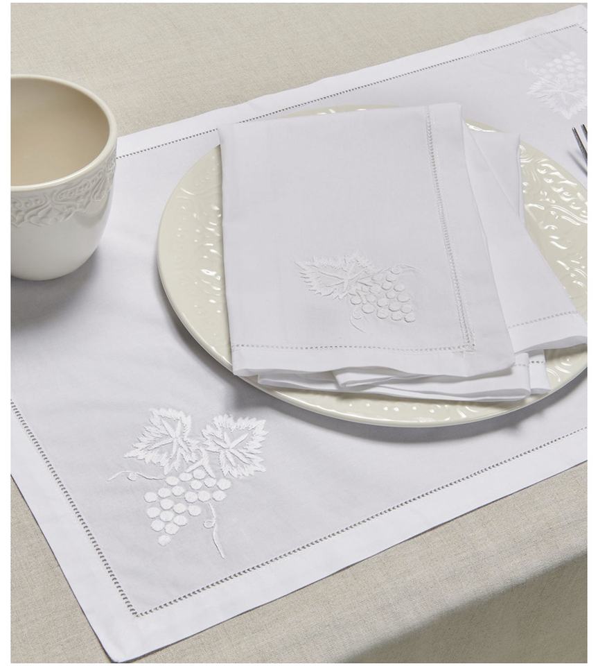 Napperons et serviettes de table en coton blanc lavable personnalisé brodé vignes de raisin blanc tapis à ourlet mariages maison hôtel événements
