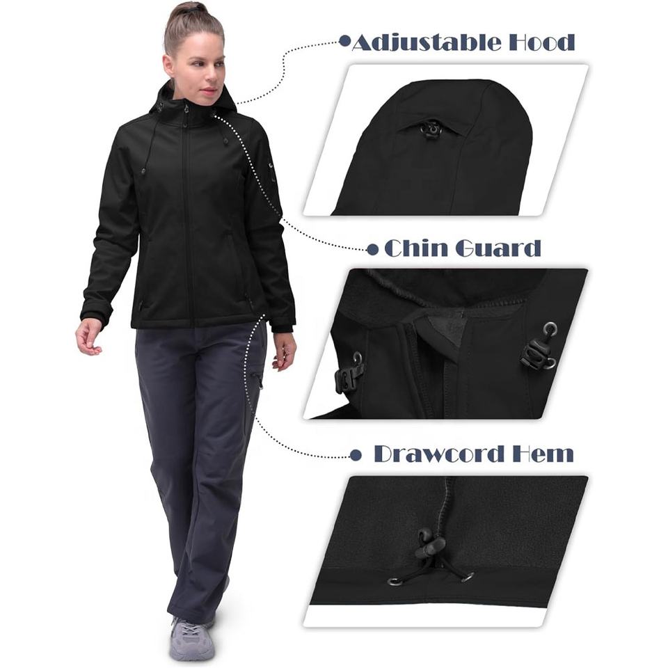 Veste coupe-vent softshell à capuche brodée sur mesure pour femmes Conception légère pour un usage actif et quotidien