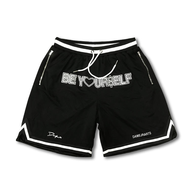 Nom du produit:Broderie personnalisée maille noire Double couche Zipper Basketball Shorts