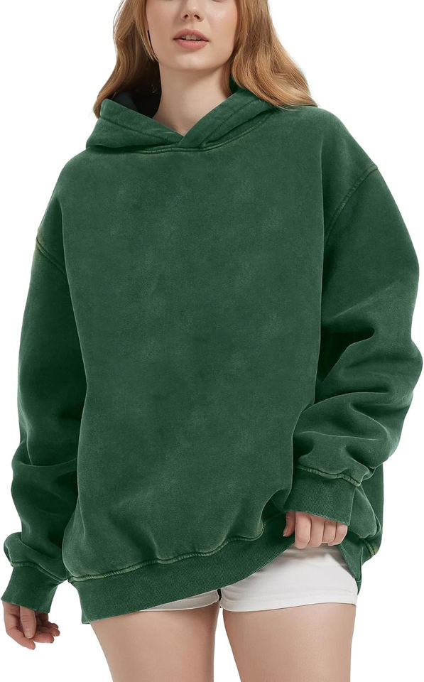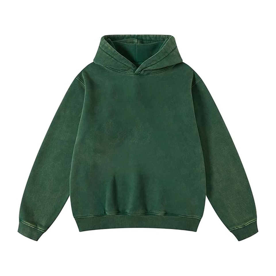 Sweat-shirt à capuche en molleton de coton vintage lavé uni surdimensionné lourd à l'avant avec broderie personnalisée, écologique et respirant