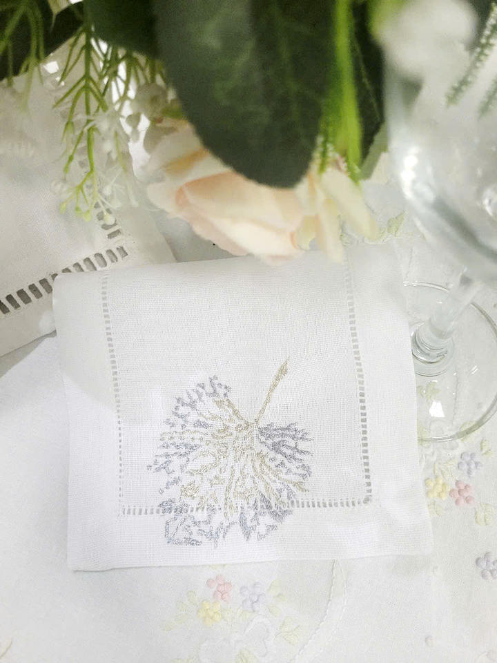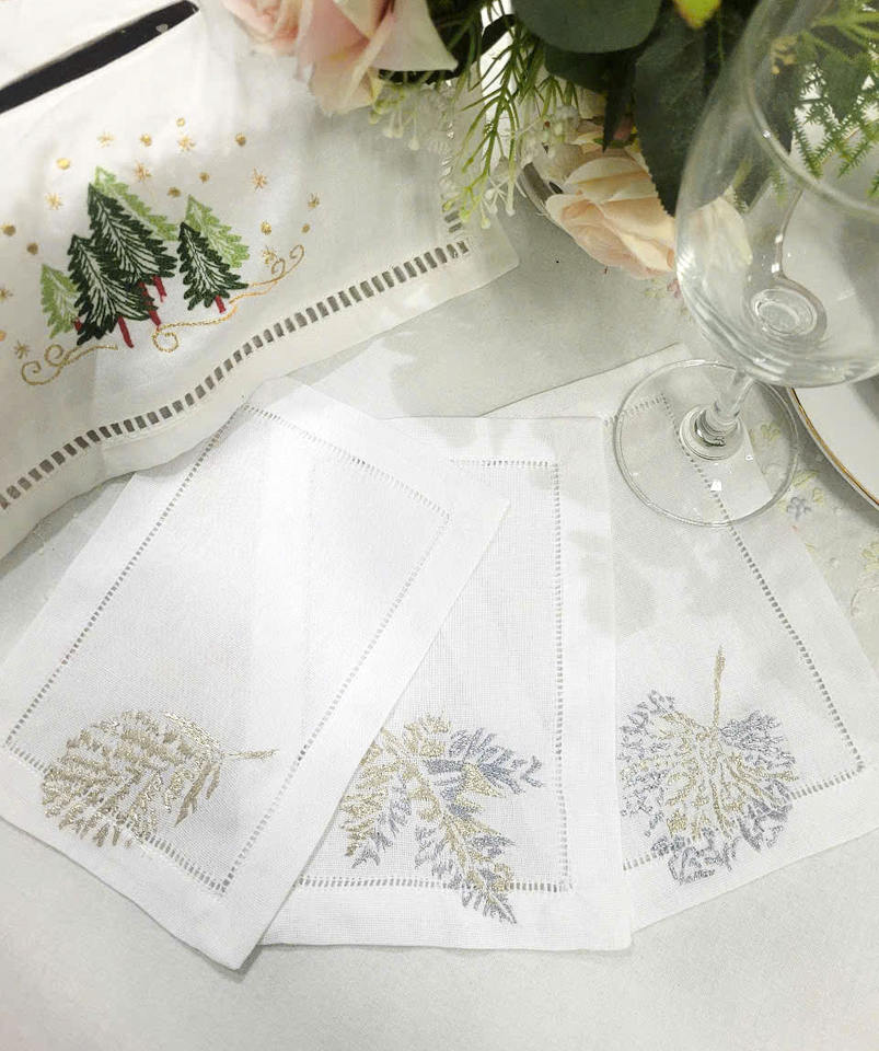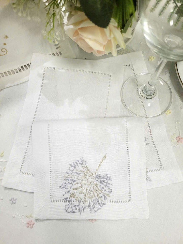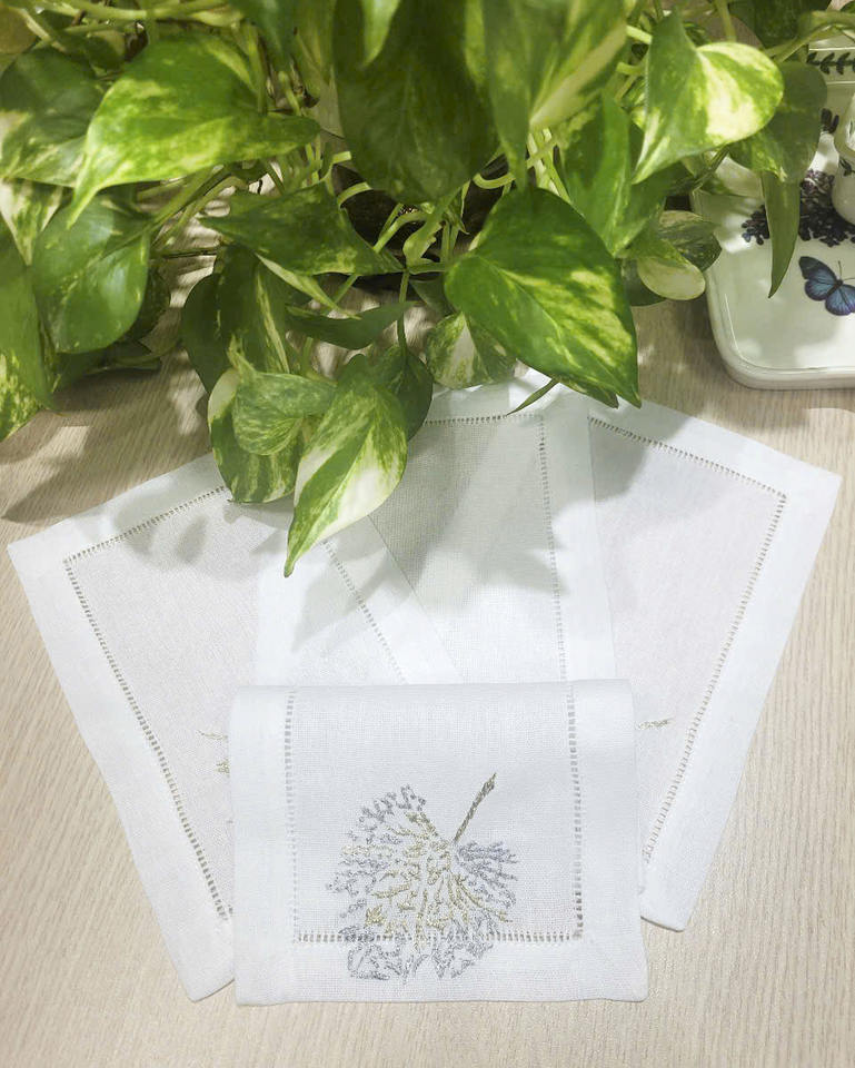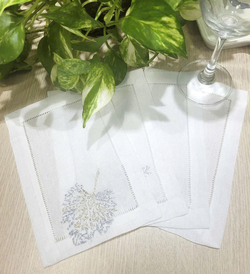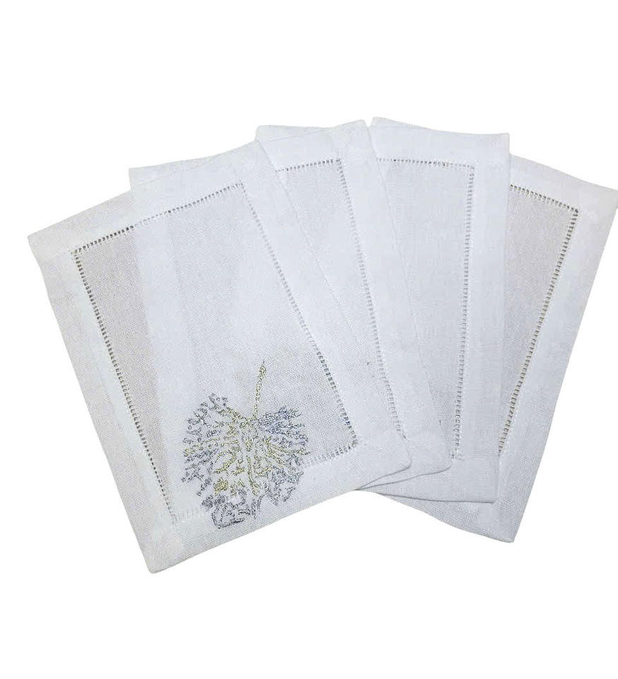 Broderie personnalisée or et argent feuille Design pli Cocktail serviettes 6x9 'blanc coton ourlet boisson serviette pour la maison hôtel